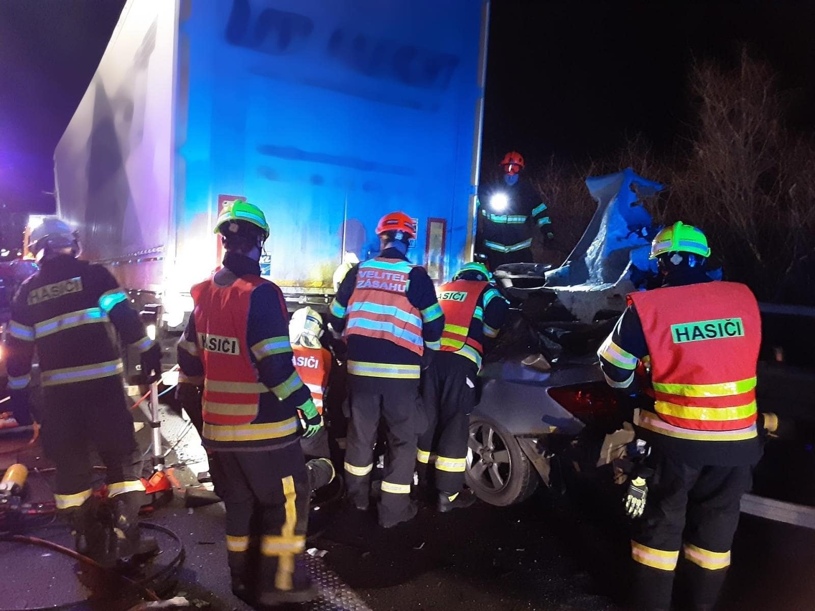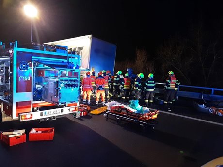 Na dálnici D2 nedaleko hranic se Slovenskem došlo v noci k těžké nehodě osobního auta a kamionu. Vozidlo zůstalo zaklíněné pod návěsem a hasiči museli v náročných podmínkách vyprostit dva cestující. Zásah trval desítky minut a dálnice směrem na Brno byla po dobu události zcela uzavřená.