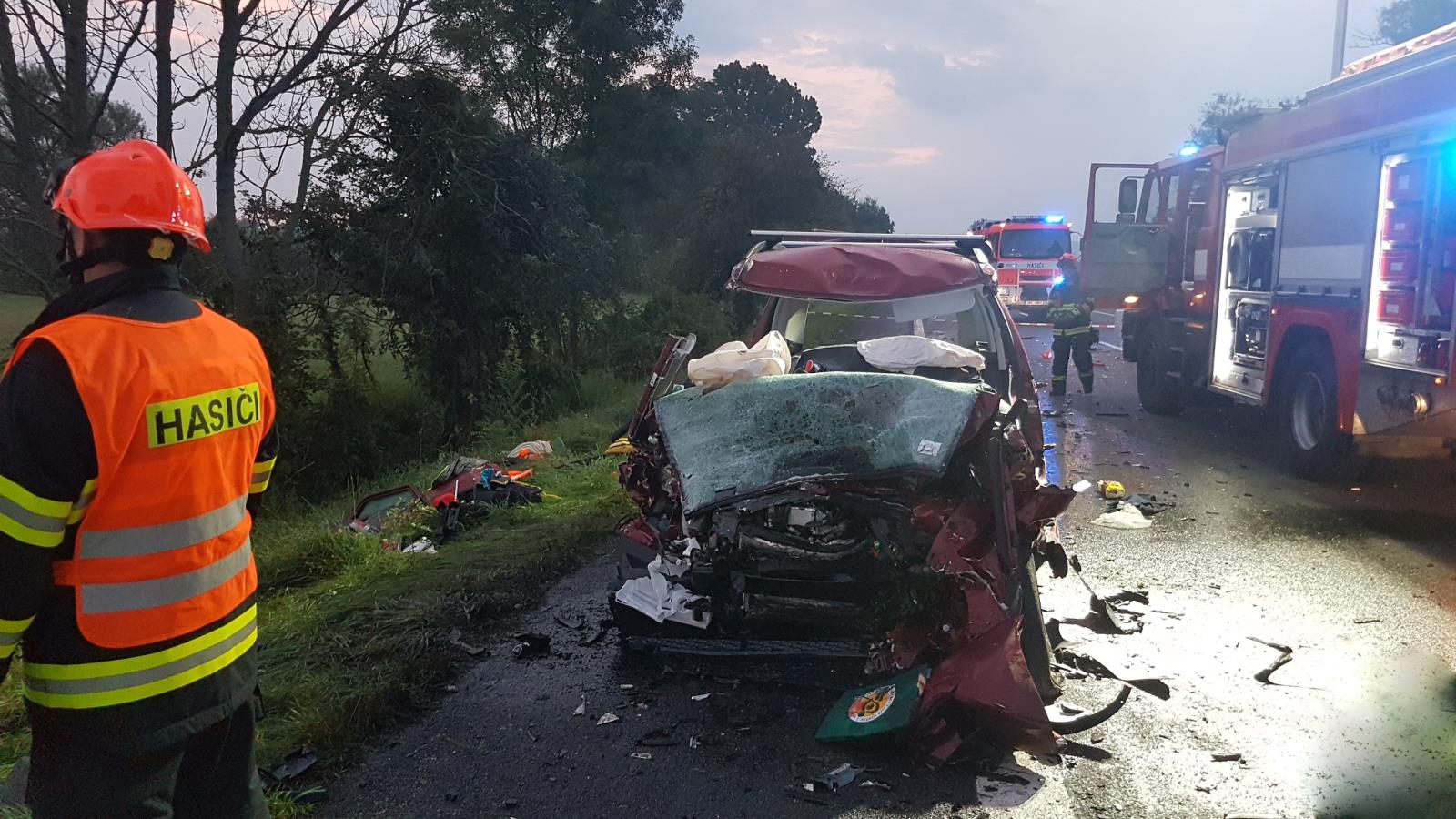 Nehoda byla ohlášena na tísňovou linku v 4:34 hodin. Na místo se postupně sjely jednotky HZS JmK stanice Hodonín a JSDH Strážnice. Hasiči pomocí hydraulického vyprošťovacího zařízení vyprostili 5 lidí z osobního vozidla Škoda Yeti. Dva dospělí a dvě nezletilé děti podlehli na místě svým zraněním. Jedno nezletilé dítě jsme pomohli transportovat do vrtulníku ZZS JmK.