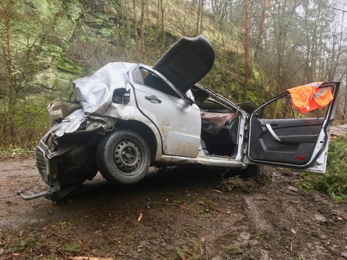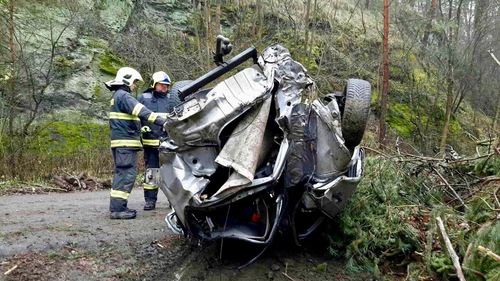 V pondělí 1.ledna 2018 havarované vozidlo skončilo po dopravní nehodě v příkrém srázu přibližně 40 m pod úrovní vozovky u vodní...