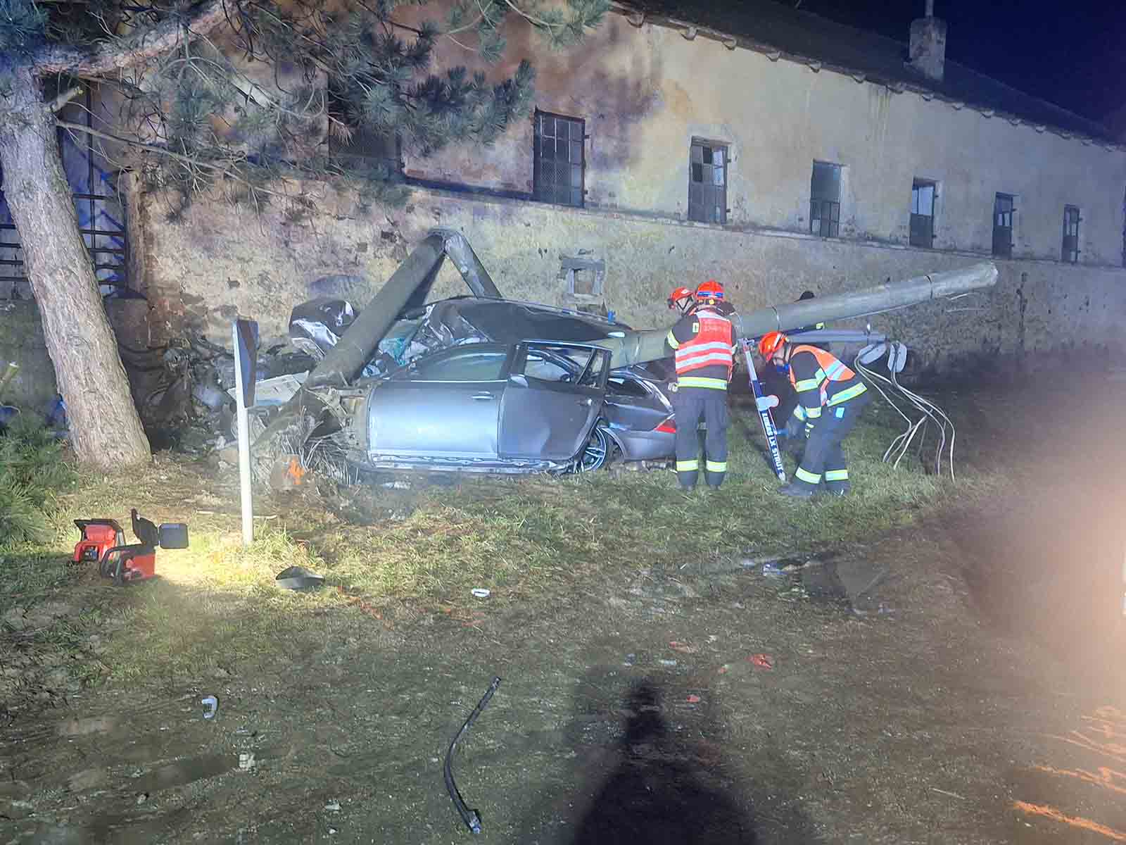 V neděli 22.2.2026 krátce před 19. hodinou vyjely k nehodě dvě jednotky Hasičského záchranného sboru. Po příjezdu hasiči zjistili, že vozidlo narazilo do dvojice sloupů elektrického vedení a řidič zůstal uvnitř zaklíněný. Velitel zásahu povolal energetiky, kteří odpojili několik domů od dodávky elektřiny a uvedli rozvody do bezpečného stavu. Vyprošťovací automobil ze stanice Znojmo odstranil přelomené sloupy a umožnil bezpečné vyproštění těla řidiče.