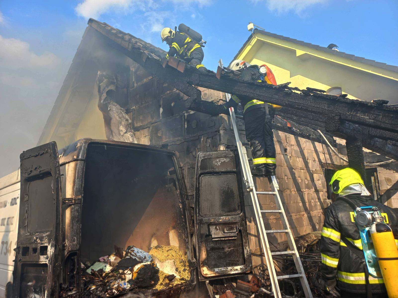 Hasiči na místě zjistili, že hoří přístavba rodinného domu, část zaparkované dodávky vedle přístavby a současně o několik metrů dál samostatně stojící dílna na ploše asi 6x10 metrů. Velitel zásahu rozdělil požářiště na 3 úseky a proti plamenům nechal nasadit 5 vodních proudů.
