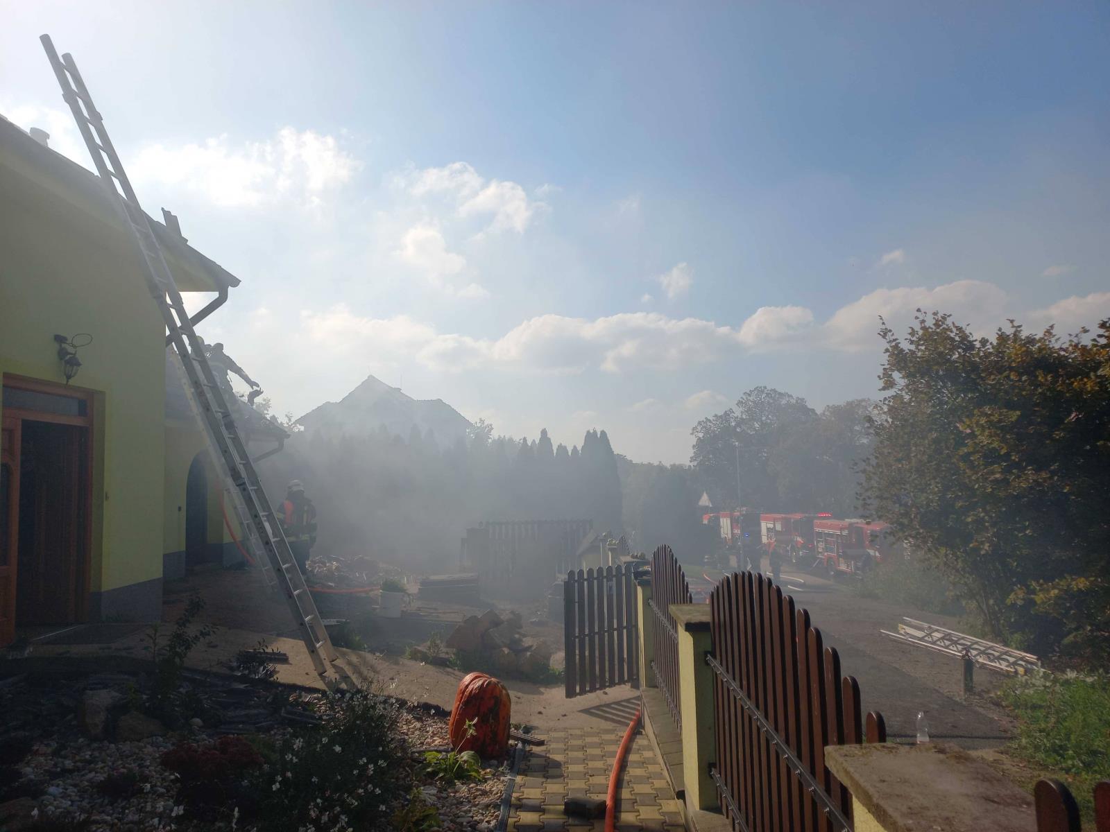 Pátek, 7. října 2022 – Milionové škody a pomoc záchranné služby si vyžádal požár dílny a přístavby rodinného domu v obci Troskotovice.