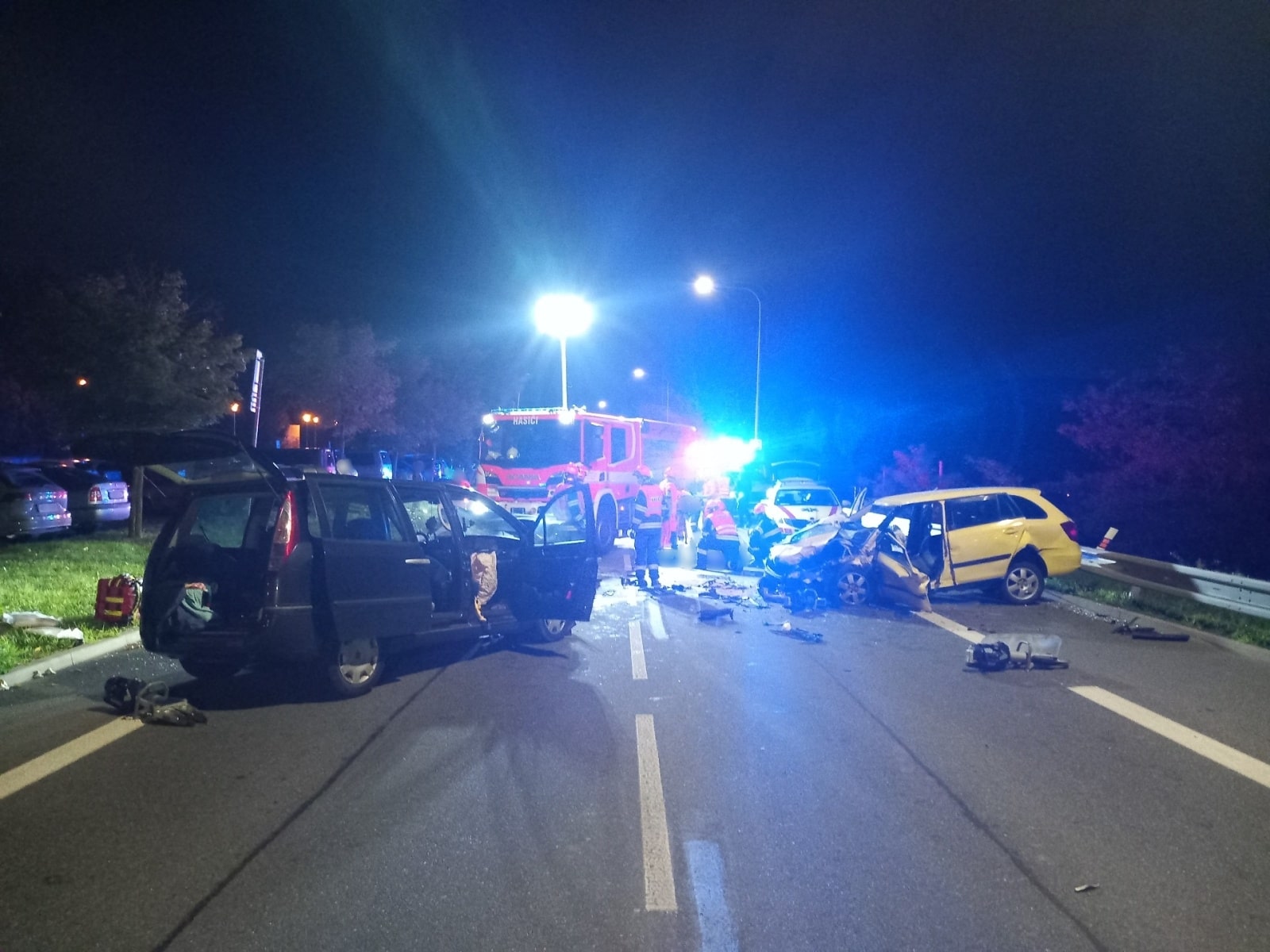 Na ulici Vejrostova v Bystrci zasahovaly ve středu večer všechny složky integrovaného záchranného systému. Po čelním střetu dvou osobních vozidel zůstali tři lidé zaklínění, další čtyři utrpěli různě vážná zranění. Hasiči zraněné vyprostili, poskytli jim první pomoc a předali je záchranářům.