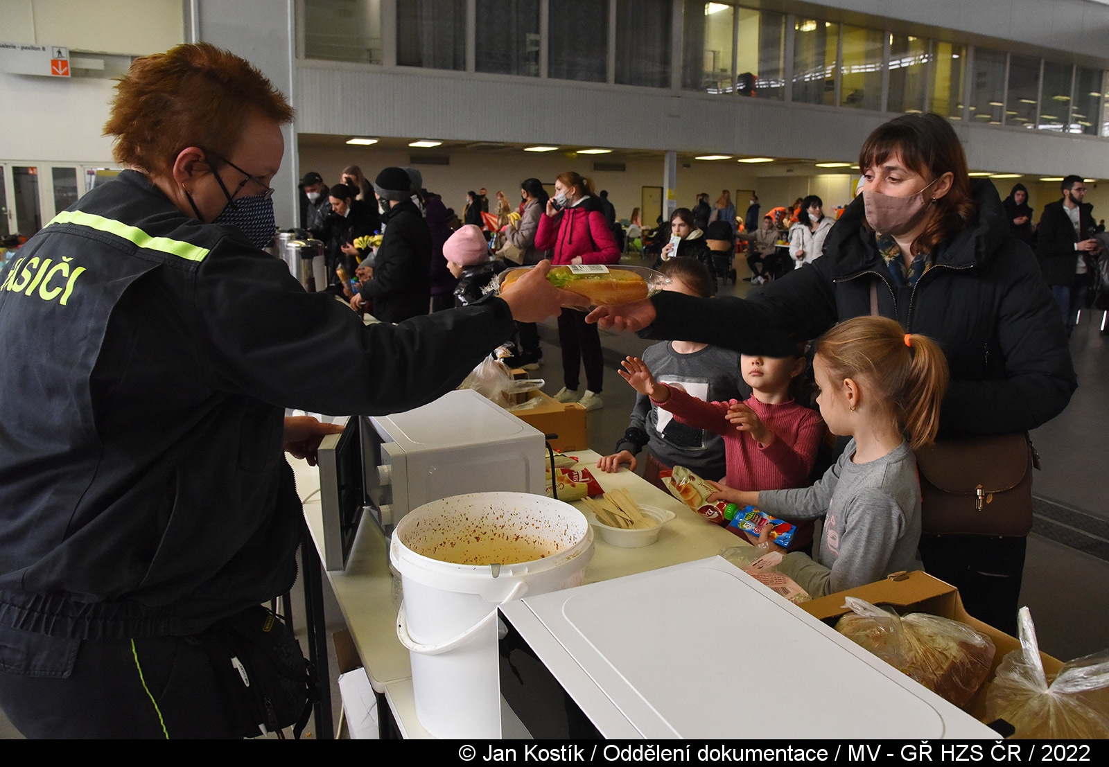 Kromě vyřízení nezbytné agendy je v místě zajištěna strava pro uprchlíky včetně dětské výživy, potřeb pro děti a hygienických potřeb. V centru je k dispozici zdravotnická, tlumočnická, duchovní péče a psychologická služba, kterou poskytují příslušníci HZS, PČR a dobrovolníci z neziskových organizací. Děti mohou využít dětské koutky, k dispozici je také prostor na spaní.