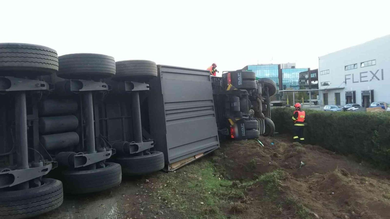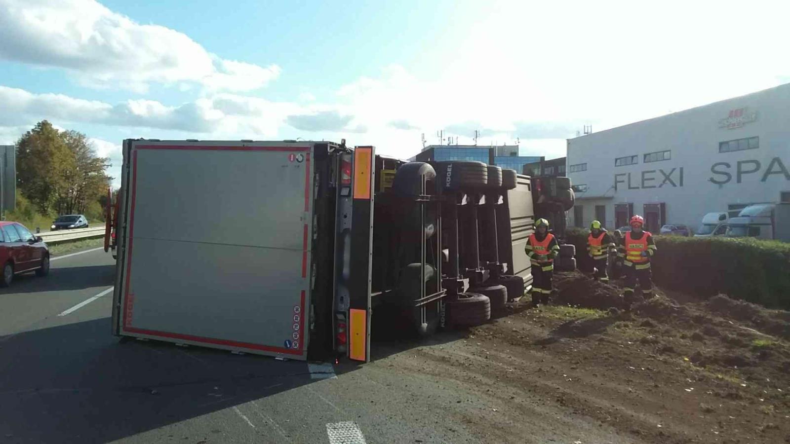 U Brna se převrátil kamion