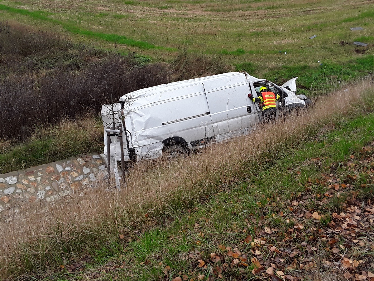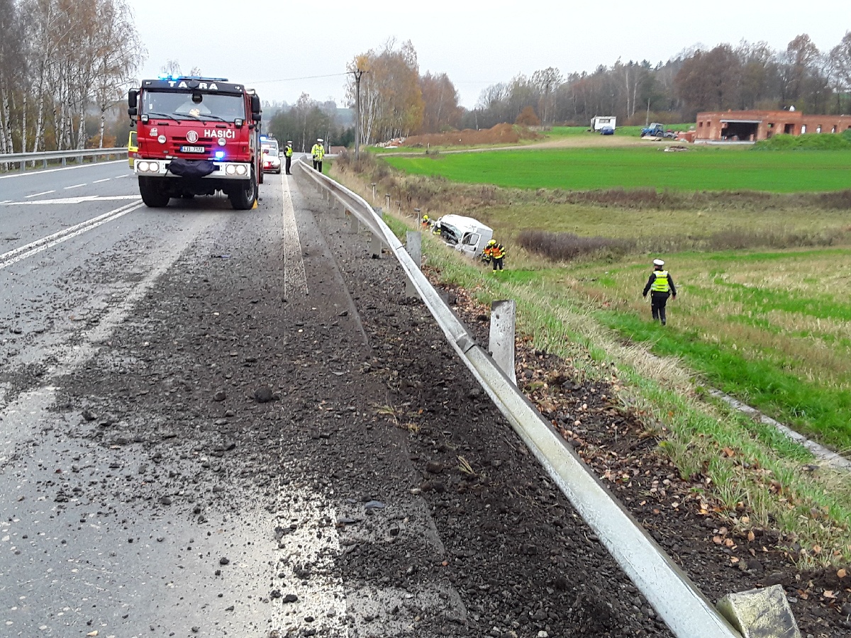U Olešné havaroval řidič s dodávkou, skončil v péči zdravotníků
