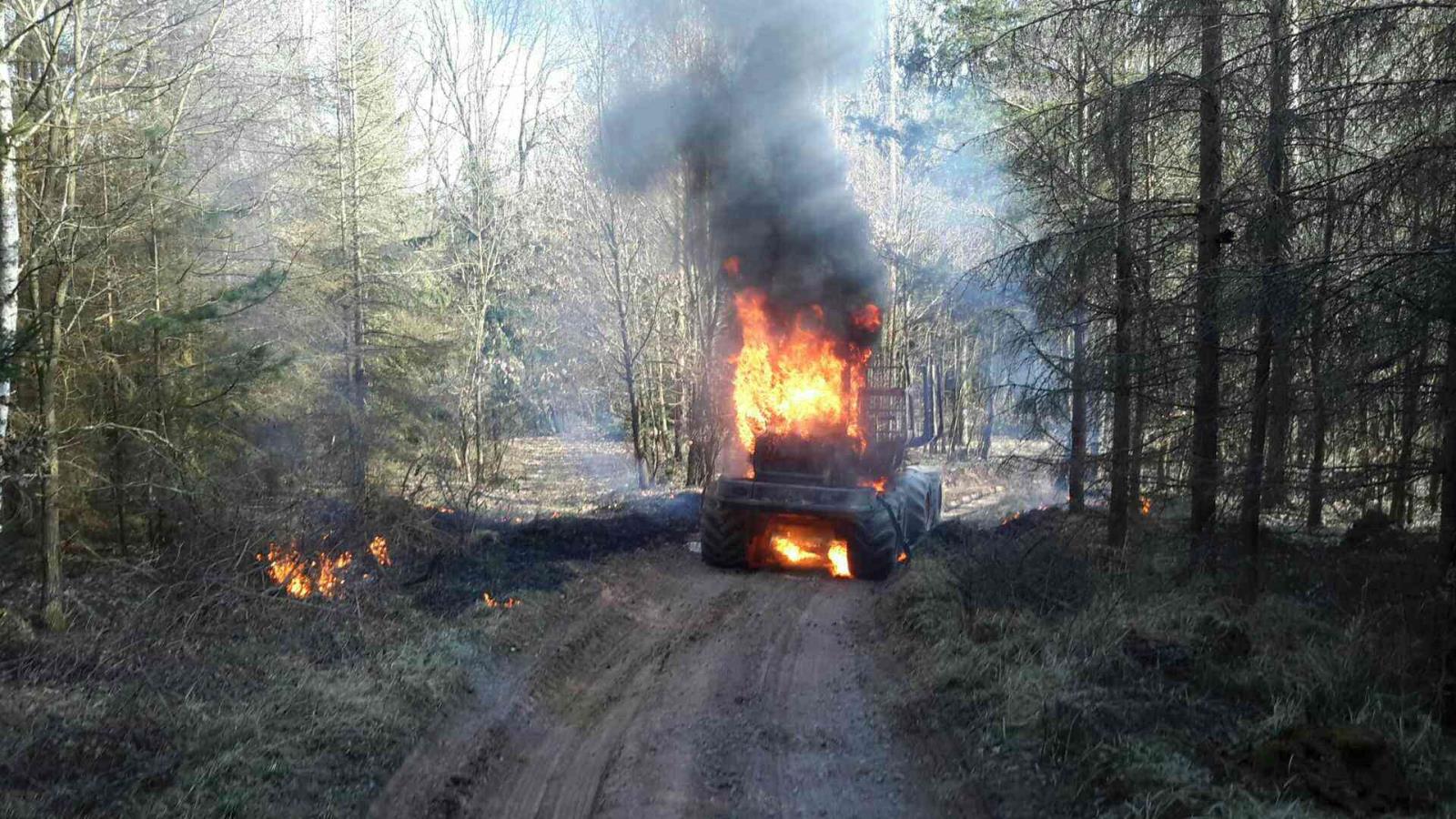 U Unína shořel lesní vyvážecí traktor