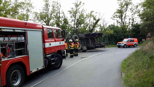 U Zbýšova na Brněnsku se převrátil kamion