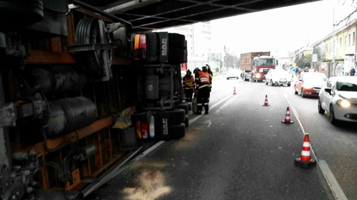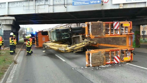 V Brně se převrátil kamion