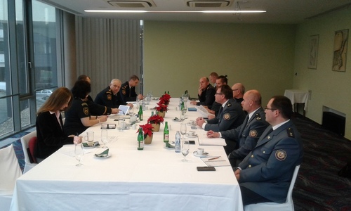 Vedení HZS Jihomoravského kraje v čele s ředitelem plk. Jiřím Pelikánem a náměstek generálního ředitele HZS ČR brig.gen. Slavomír Bell se ve středu 20.prosince 2017 v Brně sešli se svými zahraničními kolegy.