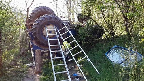 Ve středu, 18.dubna 2018, před půl šestou večer vyjeli profesionální hasiči ze stanic Ivančice a Rosice k nehodě traktoru do Moravských Bránic. Na místě zjistili, že traktor je převrácený na střechu a uvnitř kabiny zůstal zaklíněný muž. Traktor s vlečkou zajistili proti pohybu a zraněného řidiče vyprostili bez použití vyprošťovacího zařízení.
