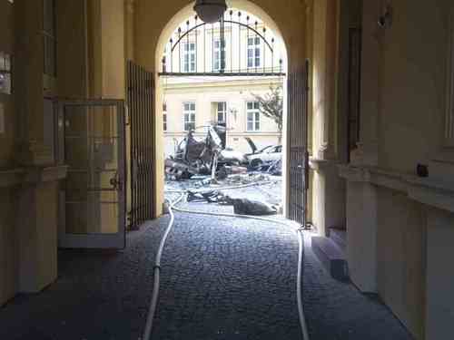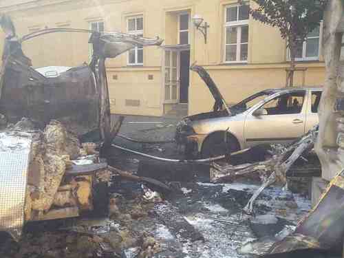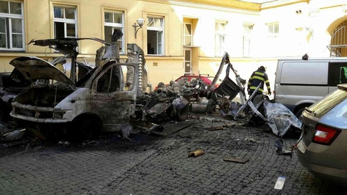 Hasiči na místě zasahovali tři hodiny. Náš vyšetřovatel odhadl, že škoda přesáhne milion korun. Po výbuchu je poškozeno množství oken, fasáda a další zaparkované vozy. Příčina celé události zůstává v šetření.