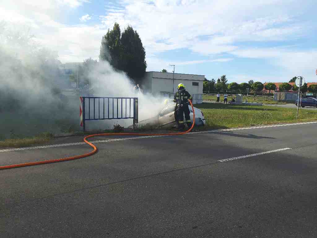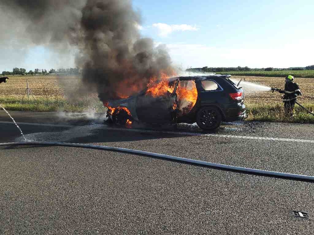 K požáru osobního vozu na 47. kilometru dálnice D2 vyjížděly vpodvečer jednotky z Břeclavska. V době jejich příjezdu byl vůz již plameny zcela pohlcen. Požár hasiči zlikvidovali dvěma vodními proudy za zhruba 30 minut od ohlášení. Provoz byl v místě požáru po dobu zásahu omezen.
