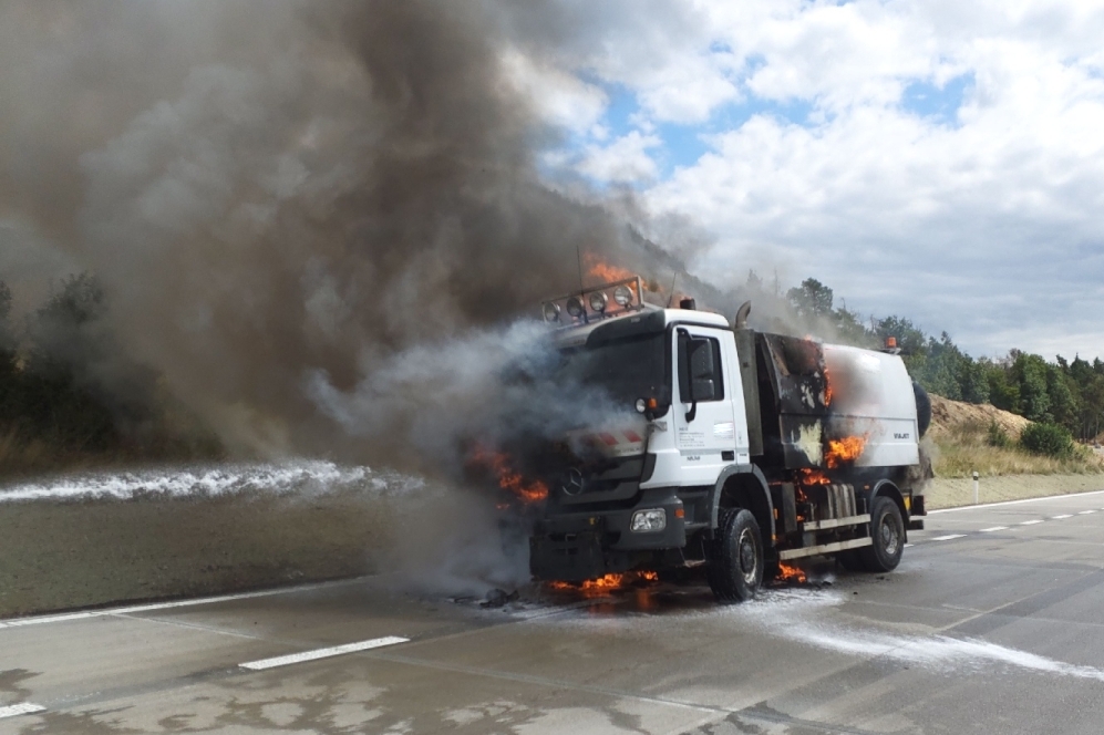V opravovaném úseku dálnice D1 shořel zametací vůz