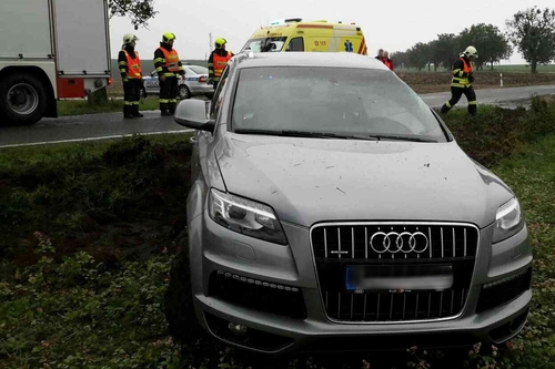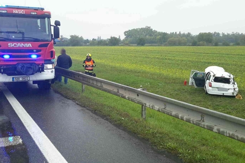U Pohořelic večer skončilo osobní auto po nehodě v rybníce. Při nehodě se zranil spolujezdec. Auto vytáhli hasiči z rybníku pomocí automobilového jeřábu.