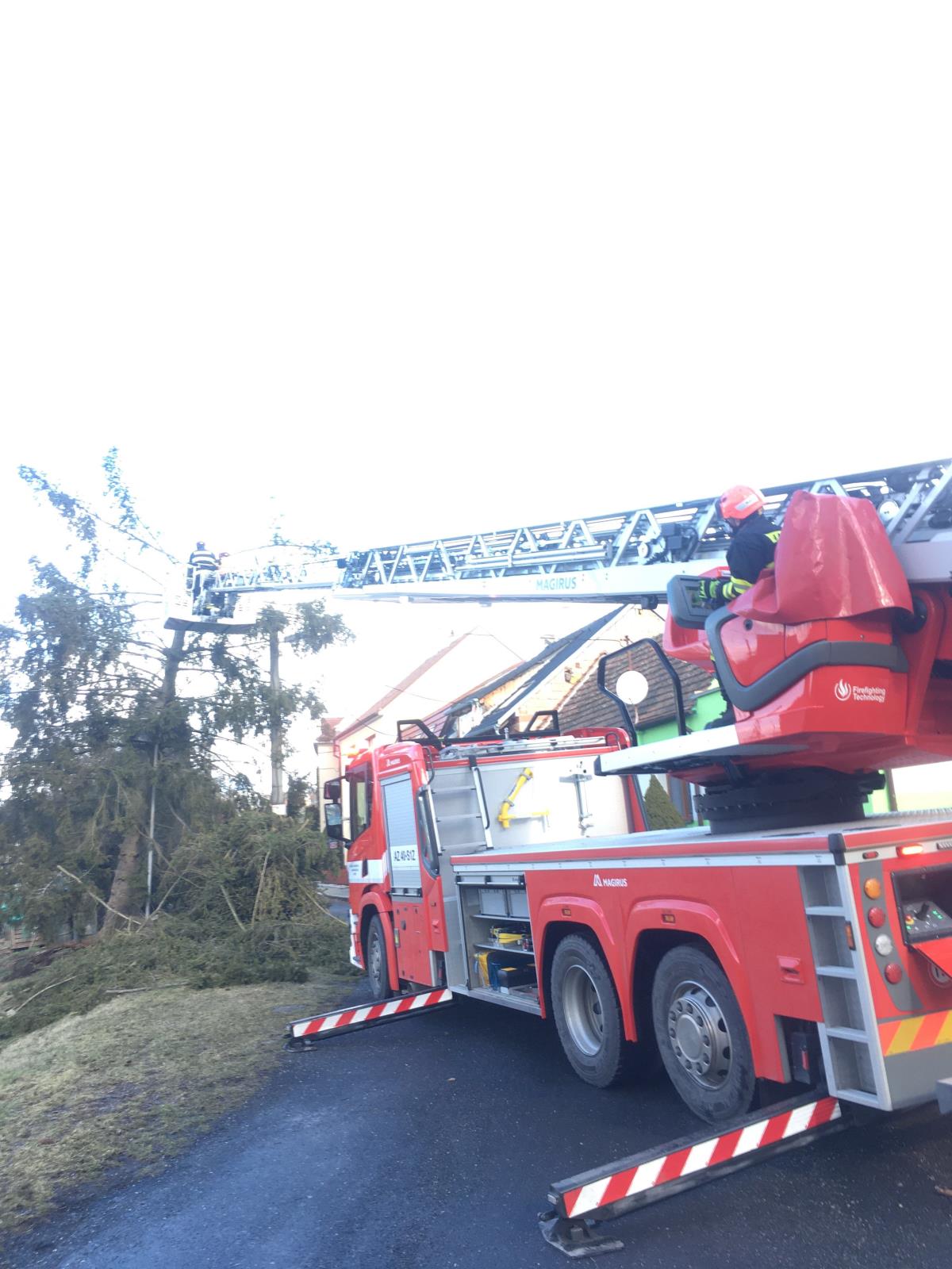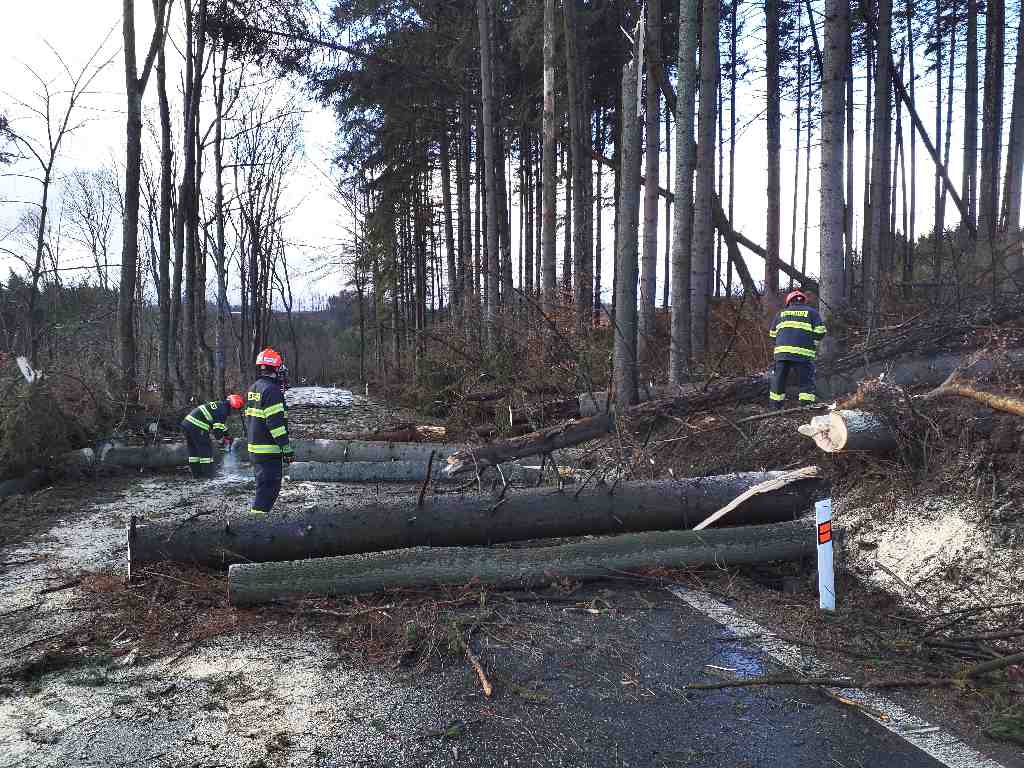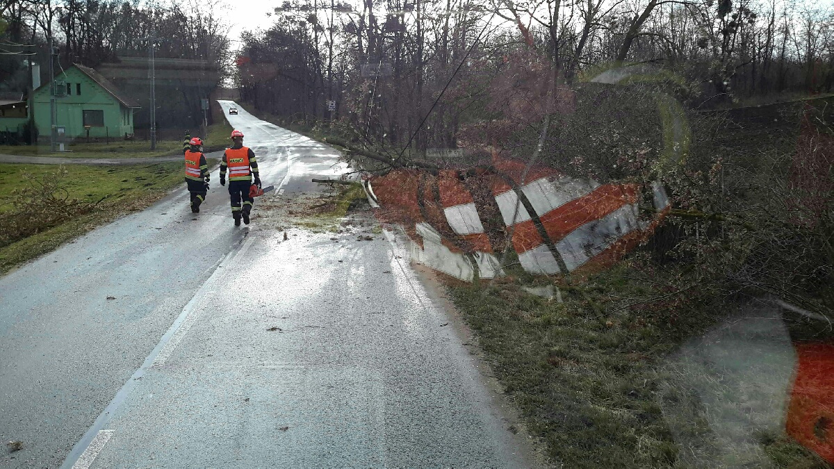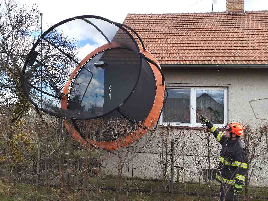 Vyvrácené nebo zlomené stromy či ulomené větve jsme odstraňovali celkem 178x. Nebezpečné stavy jsme museli řešit 70krát. Jednalo se převážně o uvolněné střešní krytiny na budovách. V Konicích u Znojma poškodil a posunul vítr plechovou boudu. V Načeraticích vítr odnesl trampolínu, která zůstala zavěšená na střeše rodinného domu.