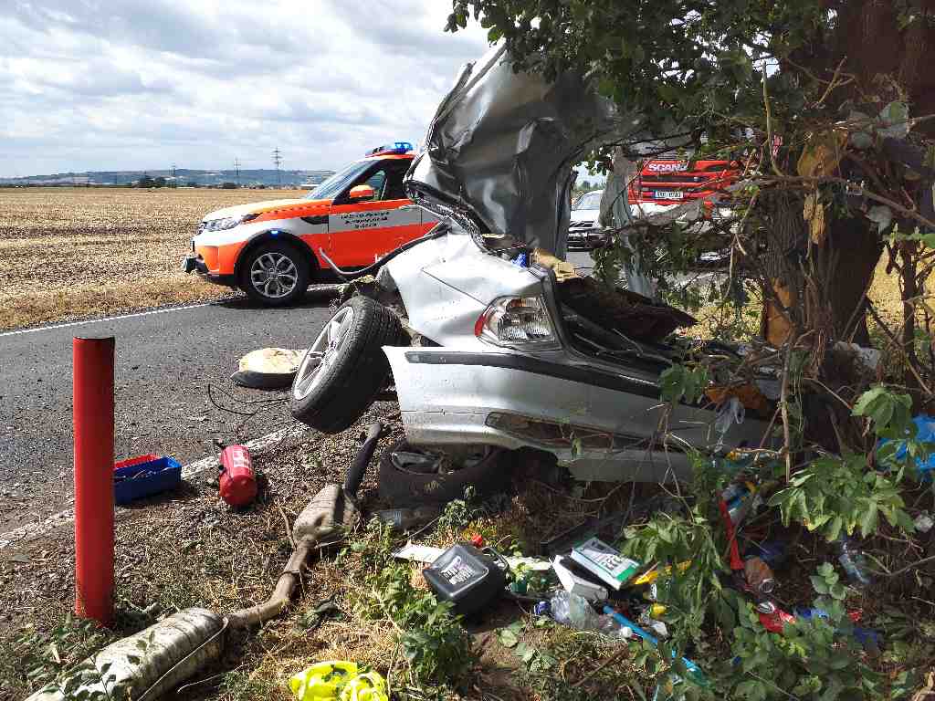 Hasiči zasahovali u vážné dopravní nehodě po nárazu do stromu...