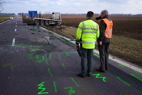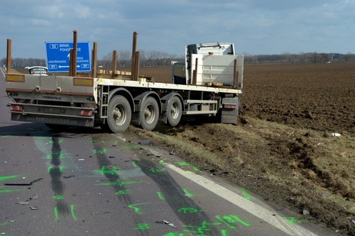 Tři profesionální jednotky hasičů z Hrušovan nad Jevišovkou, ze Znojma a stanice Brno-Lidická vyjížděli ve tři čtvrtě na deset k čelnímu střetu osobního vozu s kamionem.  Hasiči na místě ihned začali s vyproštěním zraněné ženy pomocí hydraulického vyprošťovacího nářadí. Seniorku transportoval do nemocnice vrtulník letecké záchranné služby. Řidič měl mnohačetná poranění, kterým na místě podlehl ještě před příjezdem hasičů a záchranářů. Řidič kamionu nebyl zraněn.
