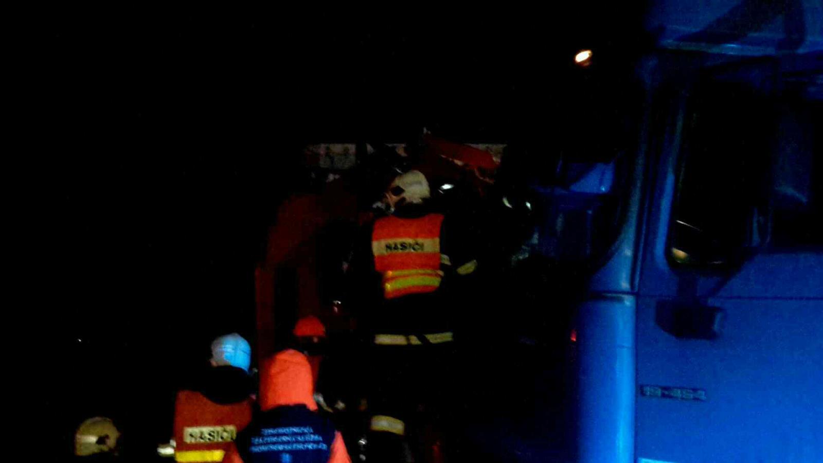 nehod22.jpgO necelou hodinu později jsme na tísňové lince přijali informaci o střetu tří kamionů na 35. km dálnice D2. K místu události zamířili hasiči z celkem šesti jednotek. Ve značně zdeformované kabině jednoho z kamionů se nacházel zaklíněný řidič. Pomocí dvou vyprošťovacích sad a za neustálé spolupráce s výjezdovou skupinou záchranné služby hasiči řidiče po necelé hodině vyprostili. K dalšímu ošetření byl řidič do nemocnice přepraven leteckou záchrannou službou.