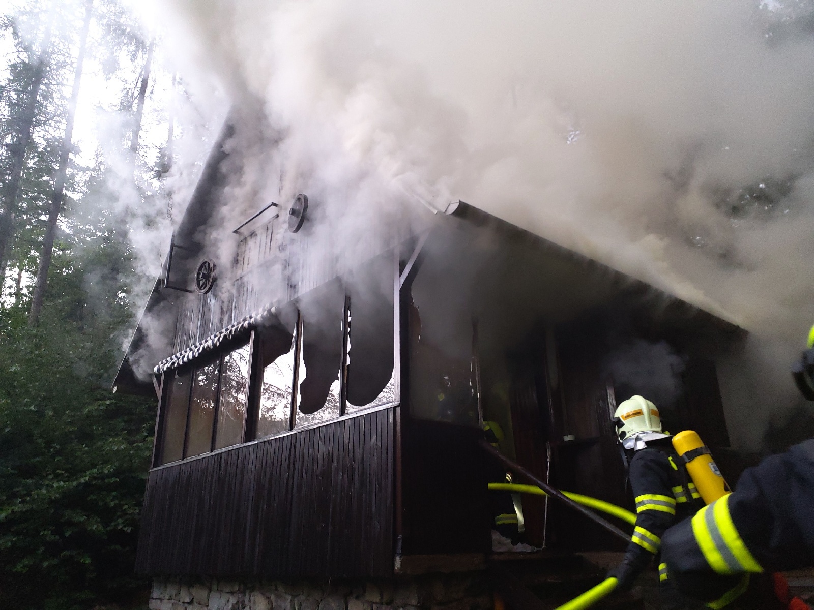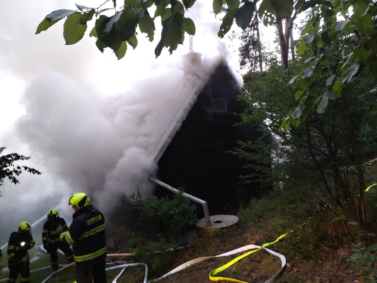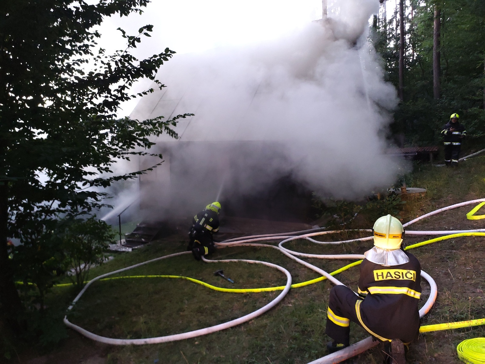 Večerní požár zničil chatu. Škoda je dva miliony.