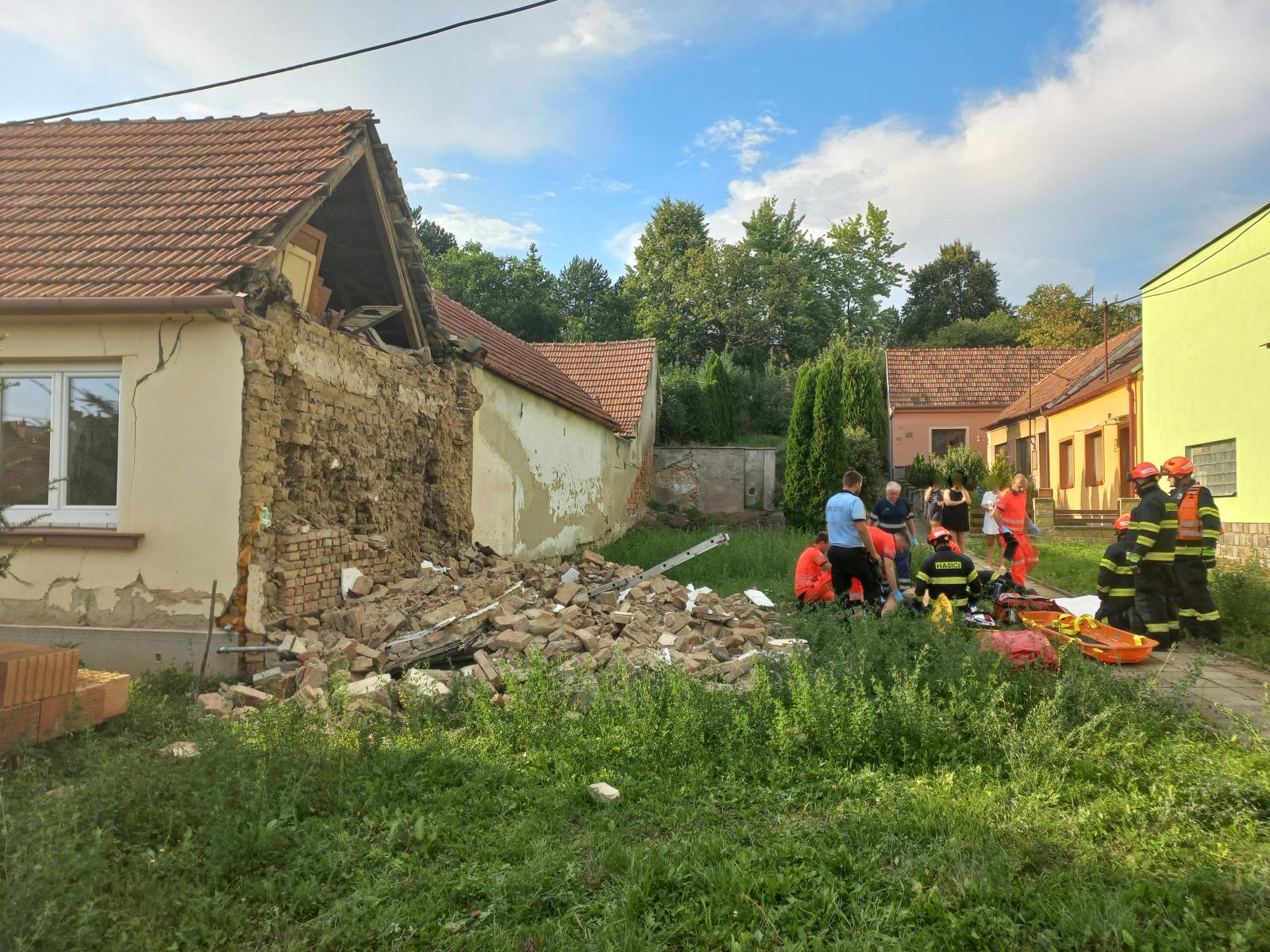 Středa, 16. srpna 2023 – Jednotky zasahovaly v Letonicích na Vyškovsku, kde část štítové zdi zavalila jednoho muže. Zásah trval několik hodin.