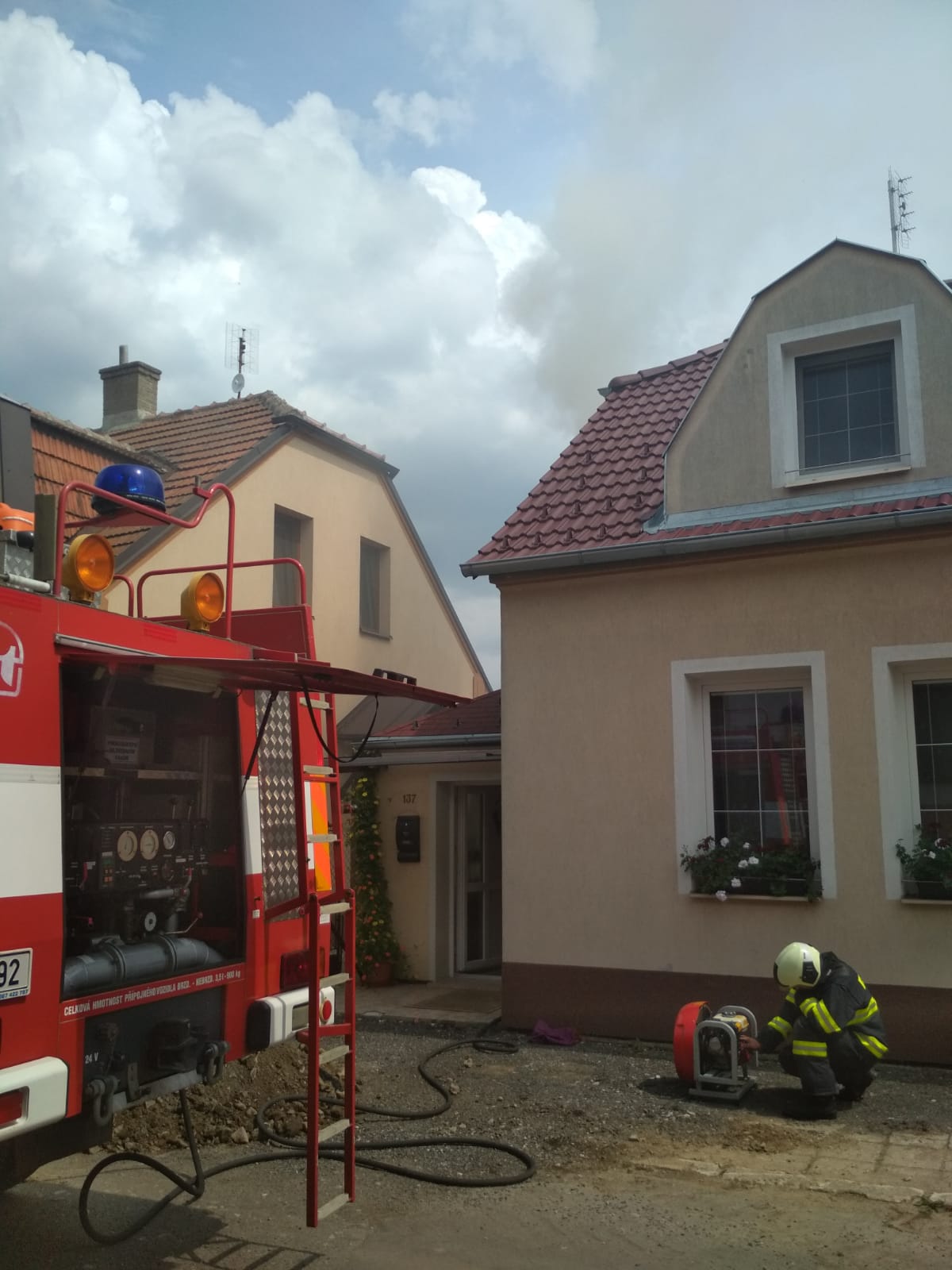 Operační a informační středisko HZS Jihočeského kraje přijalo informaci o požáru rodinného domu v Lustigově ulici v Soběslavi.