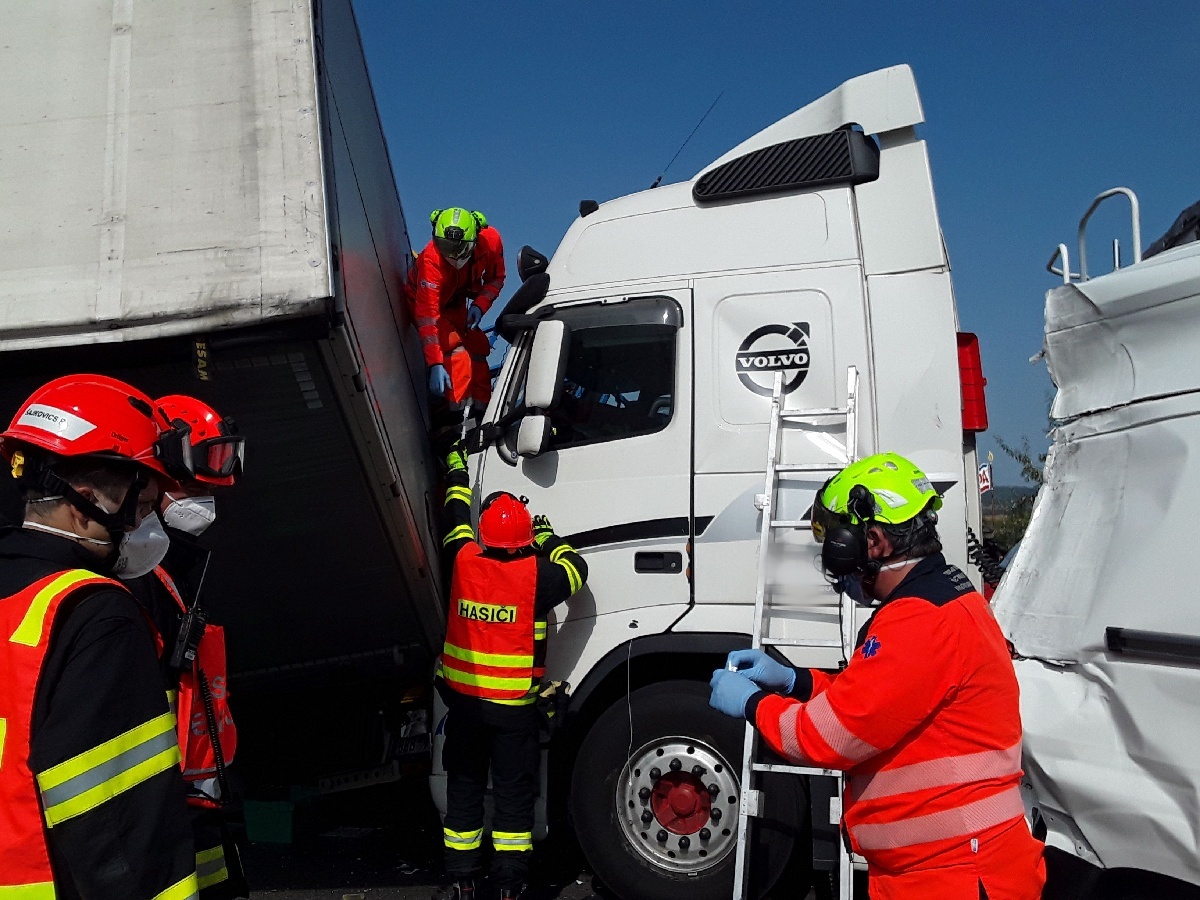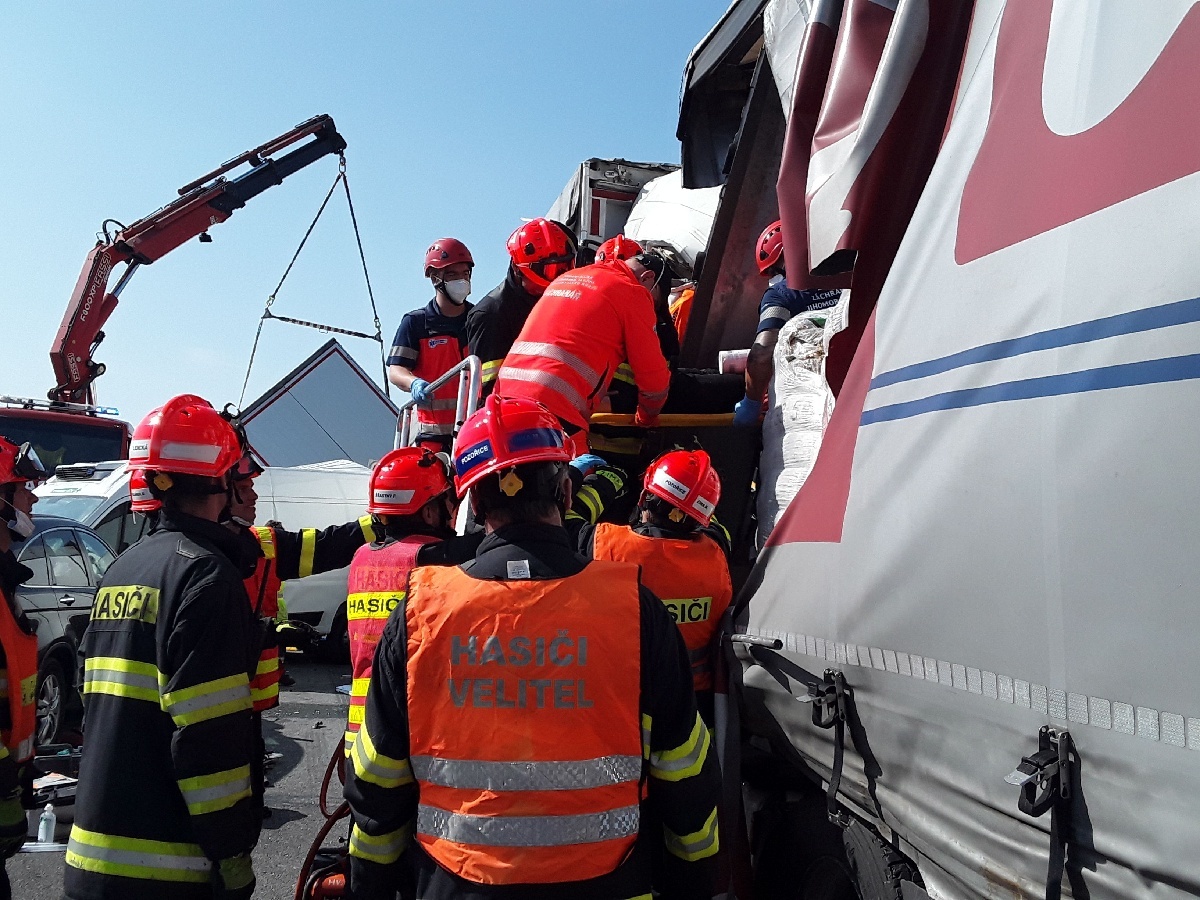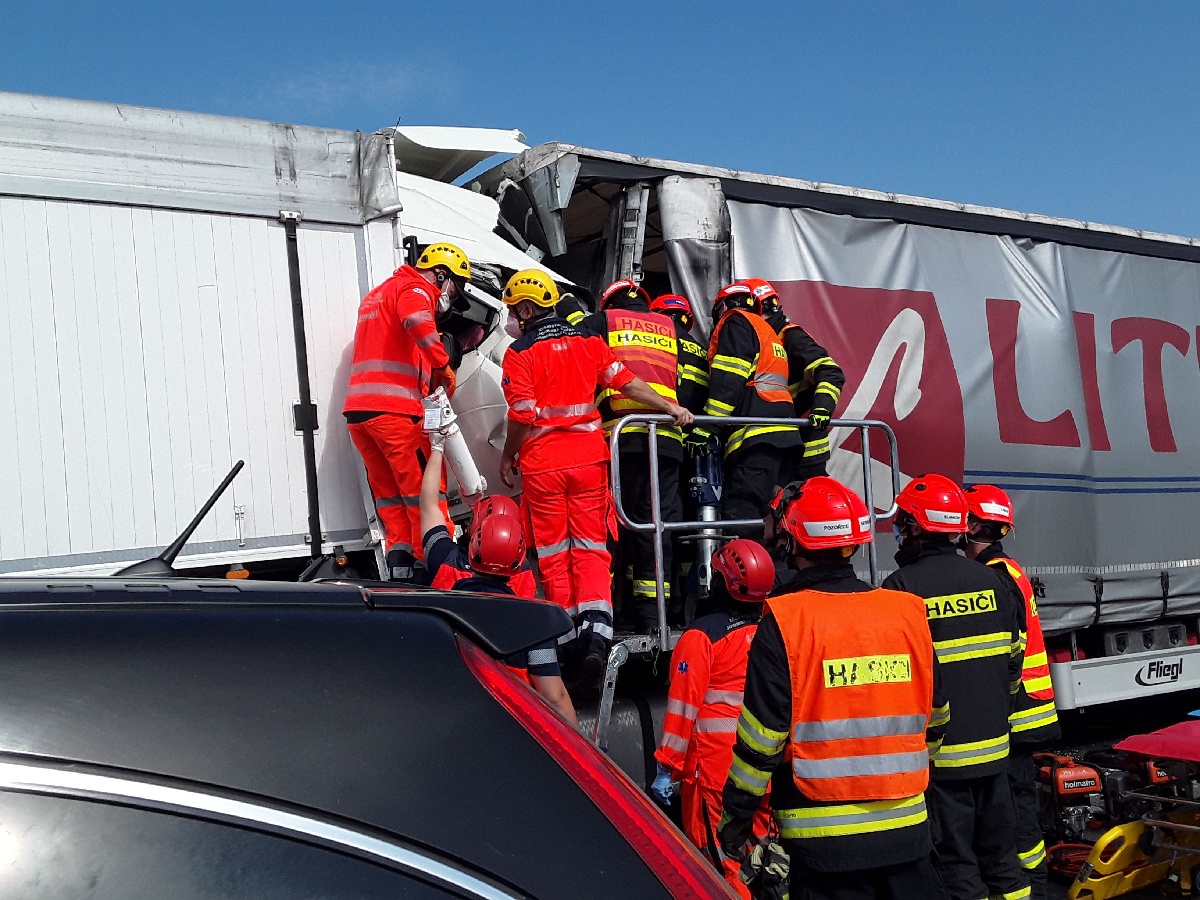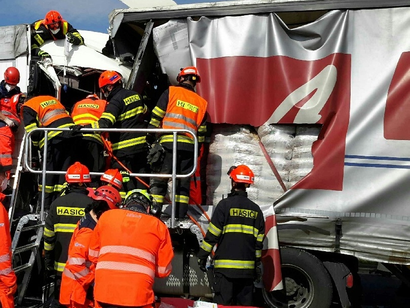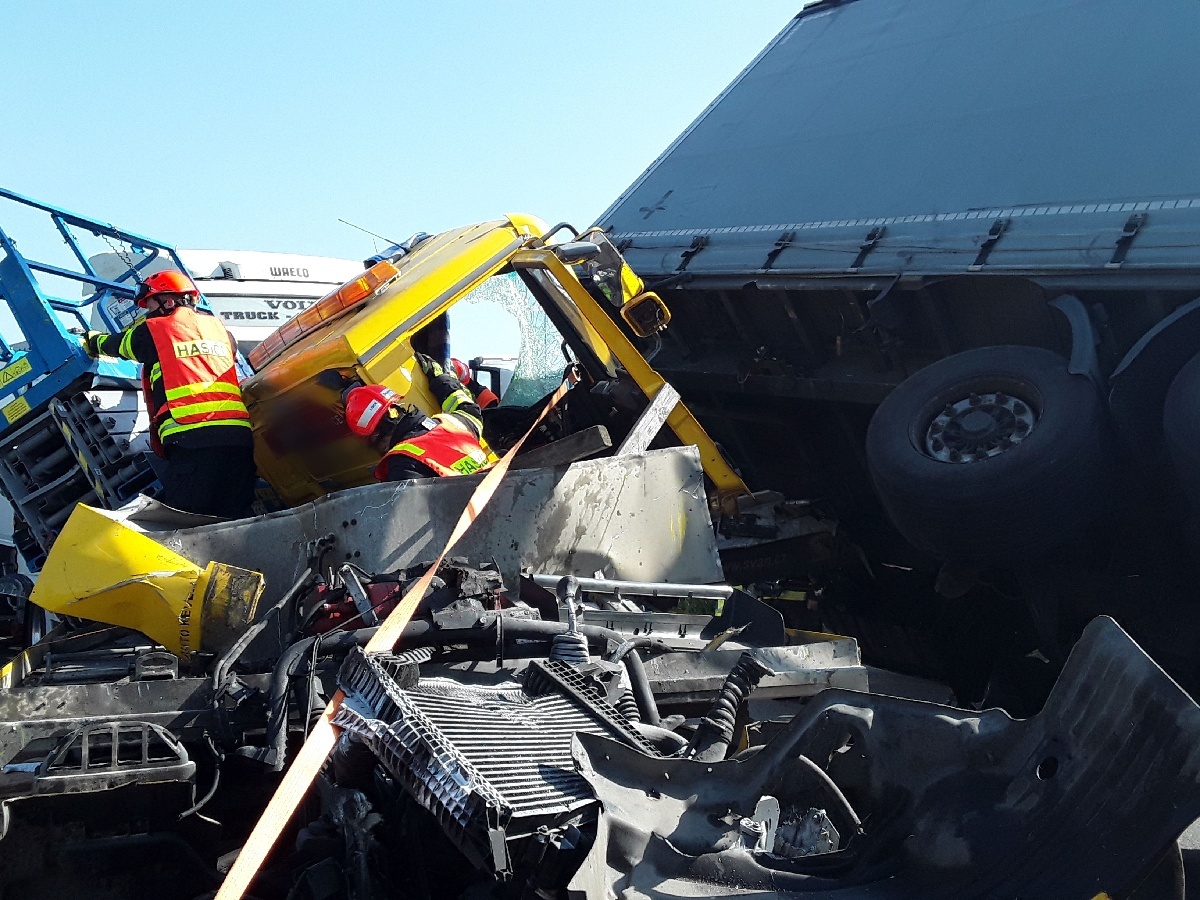 Vyproštění obou řidičů bylo extrémně náročné a v obtížných klimatických podmínkách. V jednom případě šlo o zcela zdeformovanou kabinu kamionu, který narazil do návěsu kamionu před sebou. V kabině bylo minimum prostoru a hasiči se velmi těžce dostávali ke zraněnému a museli ještě vytvořit dostatečný prostor k jeho vyproštění. Řidiče se ze zdemolované kabiny podařilo vyprostit po téměř dvou hodinách a hasiči následně pomohli záchranné službě s jeho transportem do vrtulníku, který přistál na dálnici pár desítek metrů od nehody.