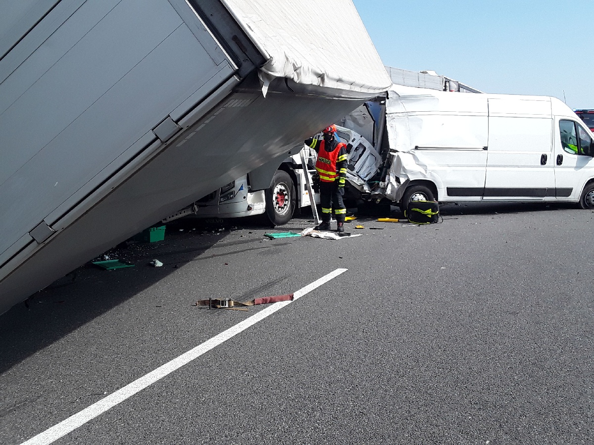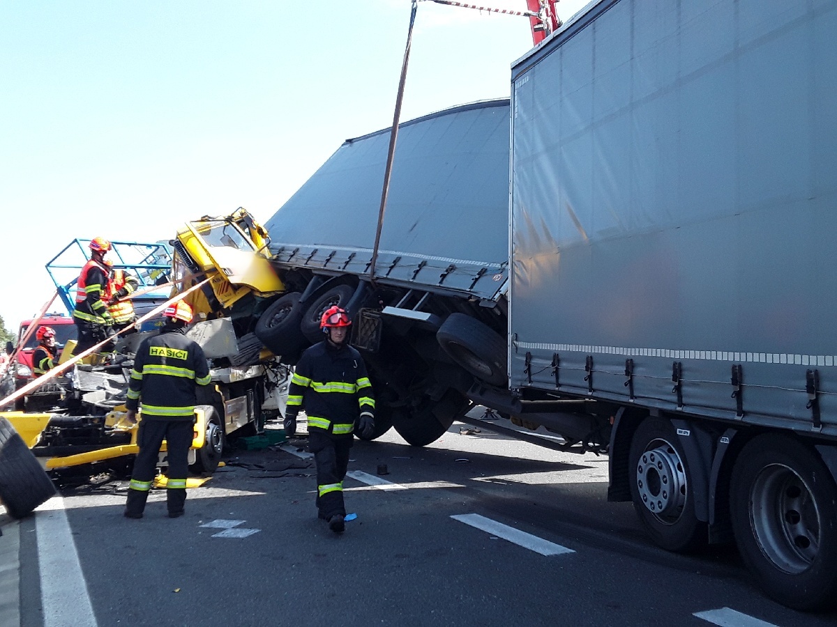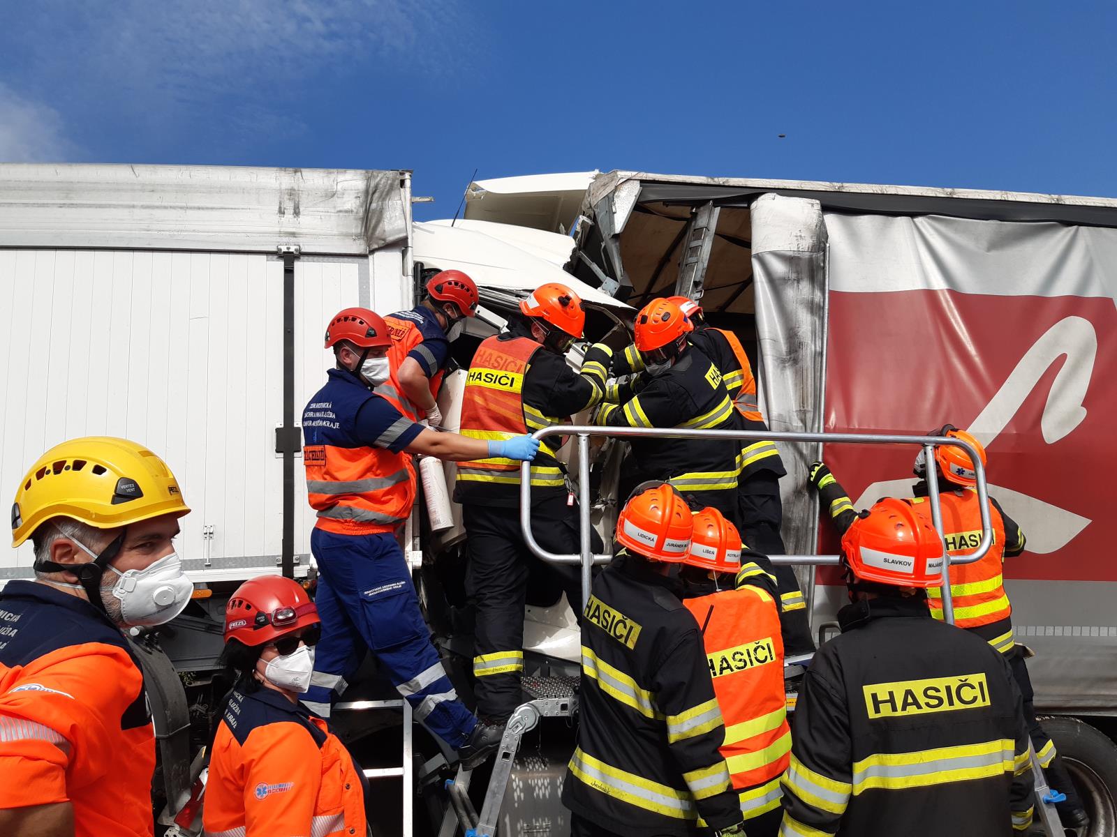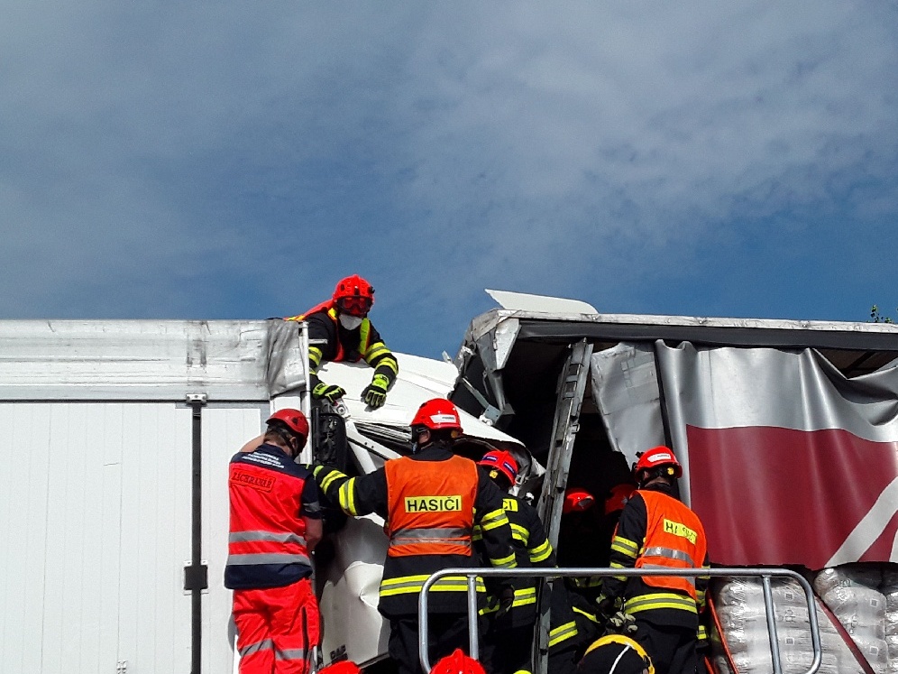 Vyproštění obou řidičů bylo extrémně náročné a v obtížných klimatických podmínkách. V jednom případě šlo o zcela zdeformovanou kabinu kamionu, který narazil do návěsu kamionu před sebou. V kabině bylo minimum prostoru a hasiči se velmi těžce dostávali ke zraněnému a museli ještě vytvořit dostatečný prostor k jeho vyproštění. Řidiče se ze zdemolované kabiny podařilo vyprostit po téměř dvou hodinách a hasiči následně pomohli záchranné službě s jeho transportem do vrtulníku, který přistál na dálnici pár desítek metrů od nehody.