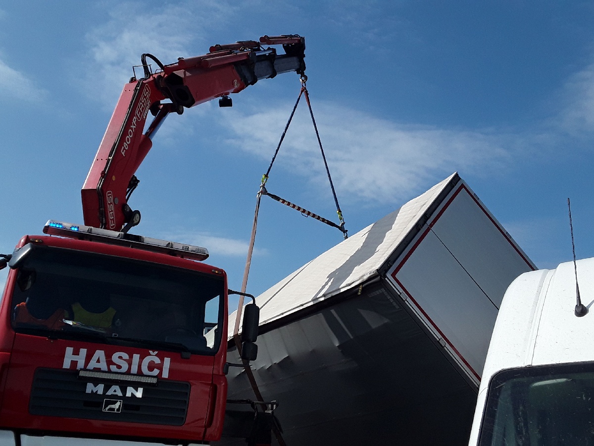 Ve druhém případě zůstal řidič zaklíněný v kabině, která byla po střetu utržena a trčela několik metrů nad zemí zapřená do přívěsu dalšího kamionu. Také v tomto případě bylo velmi náročné dostat se do kabiny. Při vyprošťování musel dokonce asistovat vyprošťovací automobil, který zajistil nahnutý přívěs. Řidiče se podařilo dostat z kabiny po více jak 2 hodinách.