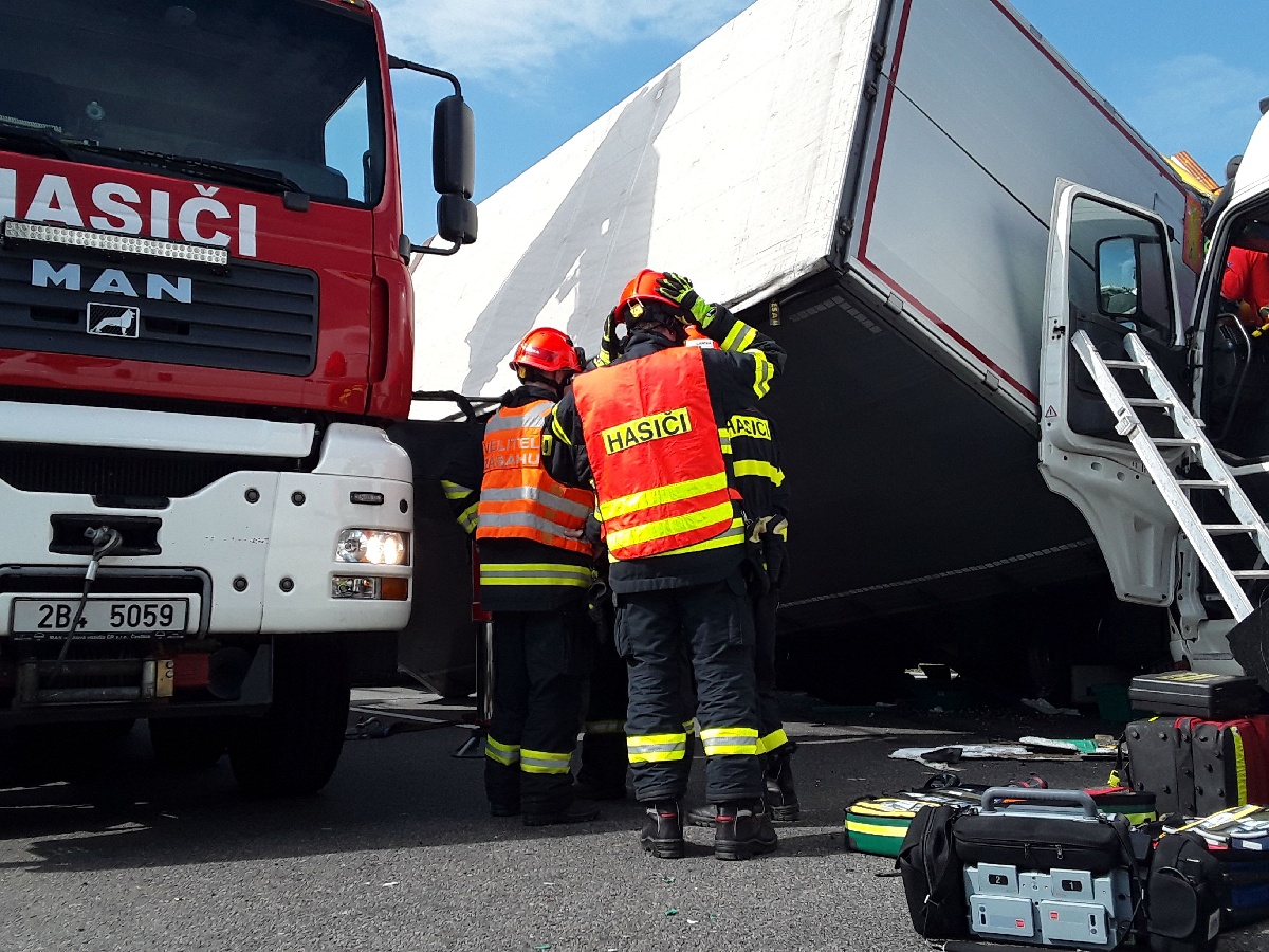 Hasiči po příjezdu zjistili, že je potřeba vyprošťovat 2 zraněné řidiče ze dvou nákladních vozů. Třetí zraněná osoba již byla mimo vozidlo.