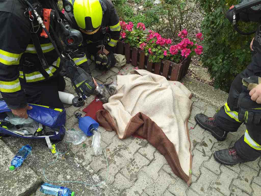 Před domem již na hasiče čekal jeden z obyvatelů domu s informací, že starší žena a pes se stále nacházejí uvnitř zakouřeného a požárem zasaženého domu. Hasiči rozvinuli dva vodní proudy a průzkumem uvnitř zakouřeného domu nalezli ženu, kterou se jim podařilo dostat ven, kde ji předali do péče posádce ZZS. Záchranná služba se postarala také o staršího muže, který byl v době příjezdu jednotek před domem.