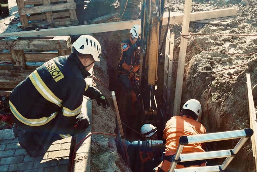 Během výkopových prací došlo k zavalení muže, který pracoval v nezabezpečeném výkopu v hloubce bezmála 5 m. Na místo vyrazily všechny základní složky IZS včetně dvou vrtulníků. Po příjezdu na místo jsme v první řadě museli zabezpečili výkop proti dalším sesuvům. Následně jsme muže vyprostili a předali do péče ZZS JmK.