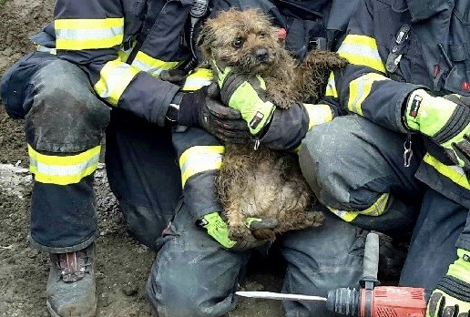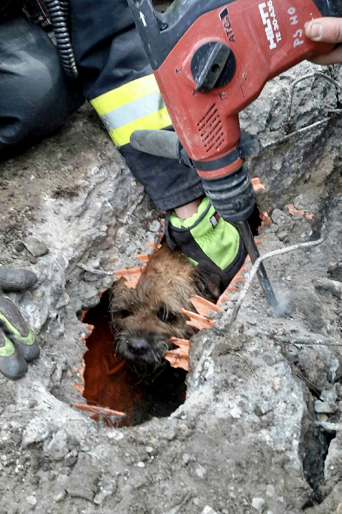 Čtvrtek, 15. dubna 2021 - tři jednotky hasičů zachraňovaly psa z kanalizace, aby se po čtyřech a půl hodinách dočkaly milého...