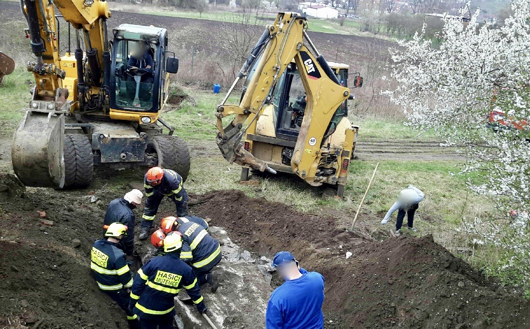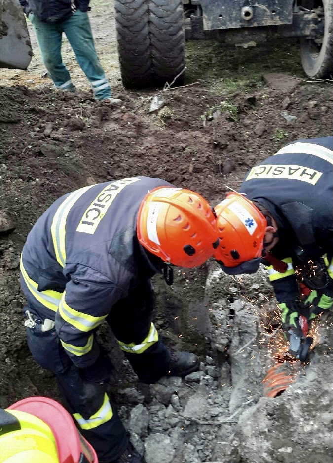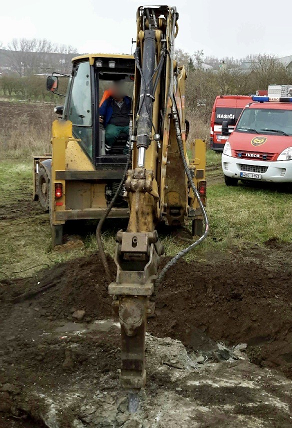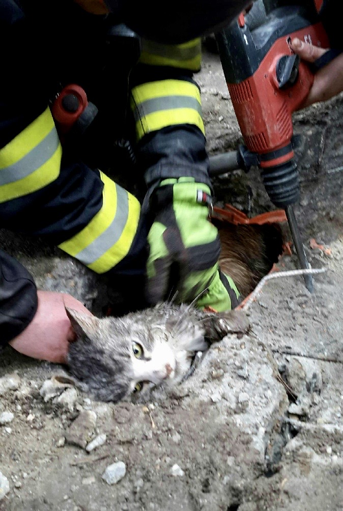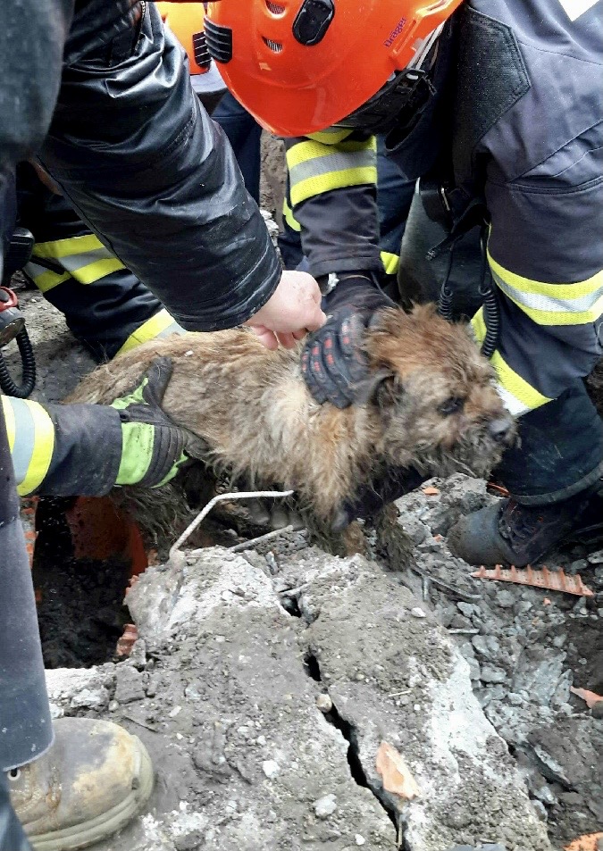 V místě kde se měl pes nacházet, jsme odházeli uskladněné palety, přivolaný bagr odstranil zeminu a pomocí úhlové brusky a bouracího kladiva jsme se probourali skrz beton do kanalizace. Velkým překvapením bylo, když jsme vytáhli přeživší kočku a následně hledaného psa, který za ní zjevně vběhl. Oba mazlíčky jsme předali majitelům.