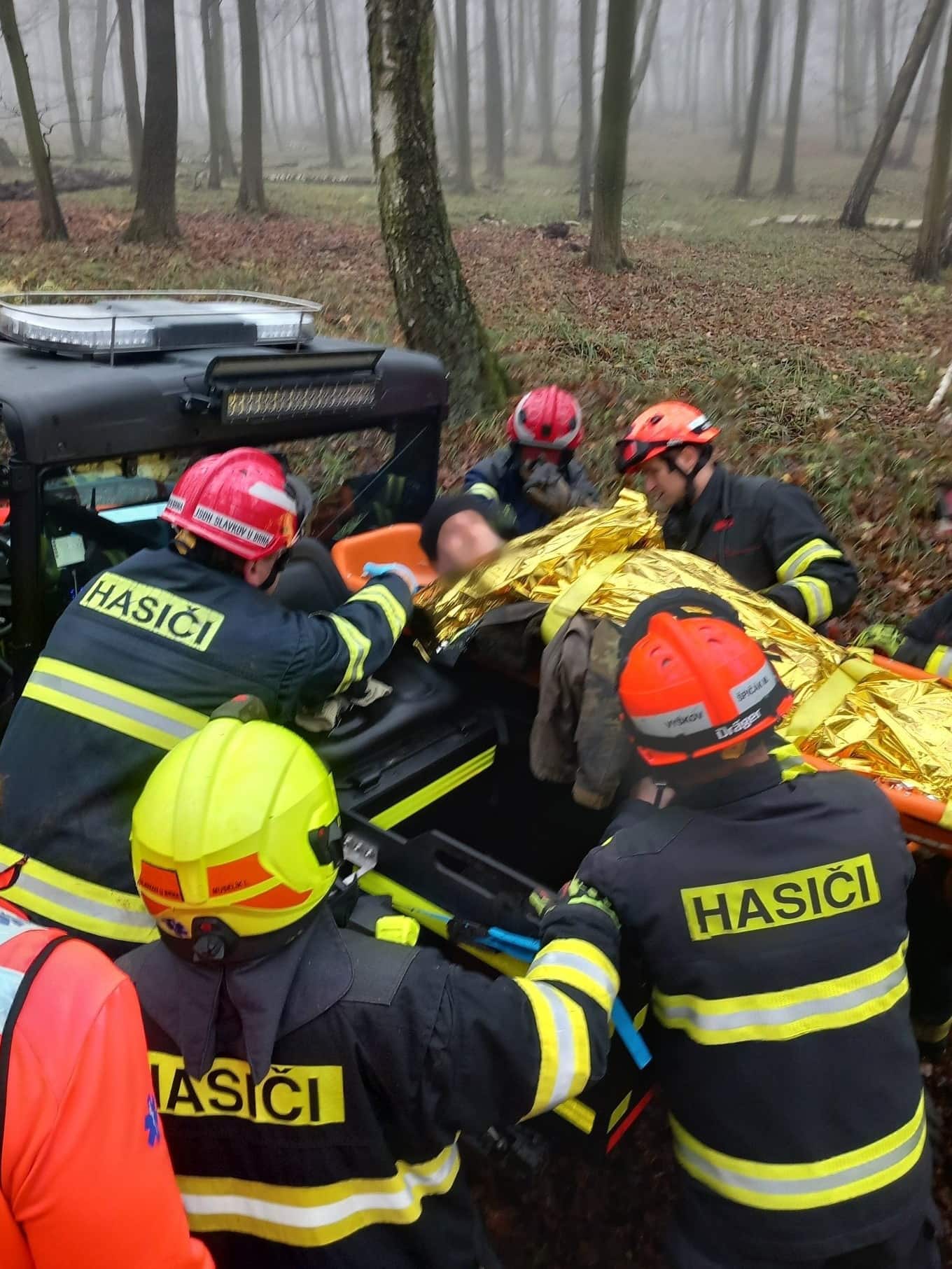 V sobotu dopoledne vyjížděly tři jednotky hasičů na žádost Zdravotnické záchranné služby JMK k zásahu poblíž Heršpic na Vyškovsku. Zraněný muž se nacházel hluboko v lesním porostu, kde nevedla sjízdná komunikace a přístup byl možný pouze pěšky. Už prvotní průzkum potvrdil, že terén je pro techniku neprůjezdný a bude nutné zapojit kombinaci fyzického transportu a speciální techniky.