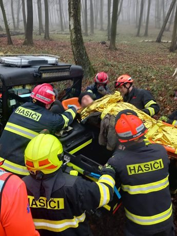 Tři jednotky hasičů vyrazily v sobotu dopoledne na pomoc Zdravotnické záchranné službě Jihomoravského kraje. Zraněný muž ležel v lesním úseku poblíž Heršpic na Vyškovsku, kam bylo možné dojít pouze pěšky. Společný zásah obou složek IZS zahrnoval zpřístupnění terénu i transport pacienta pomocí čtyřkolky.