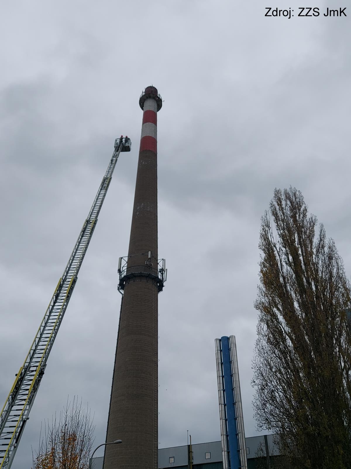 Po celou dobu zásahu jsme měli v pohotovosti dvě nafukovací seskokové matrace a Policii ČR jsme asistovali s automobilovým žebříkem. Přes operační středisko jsme také zajistili vypnutí technologií umístěných na ochozu komína.