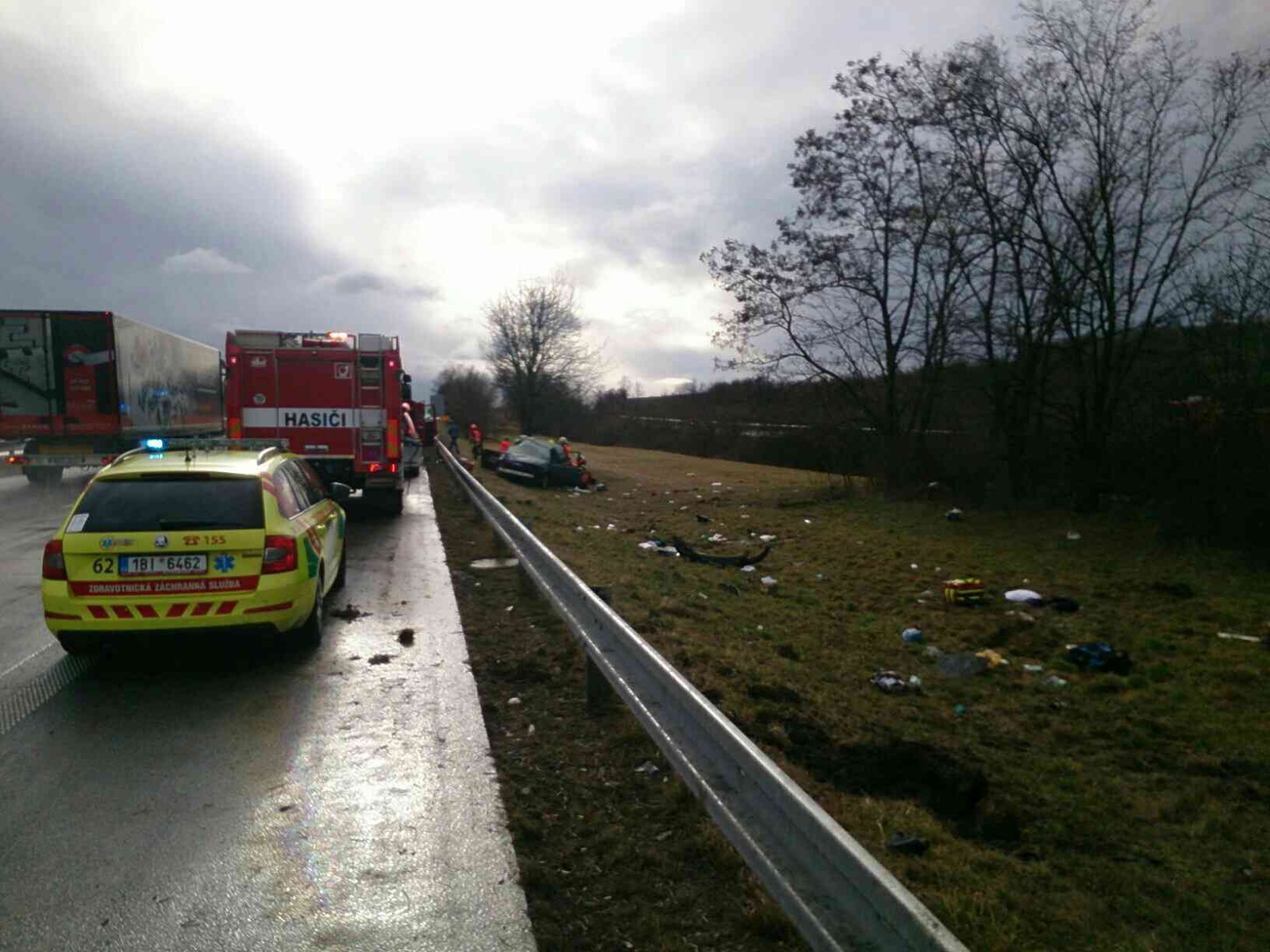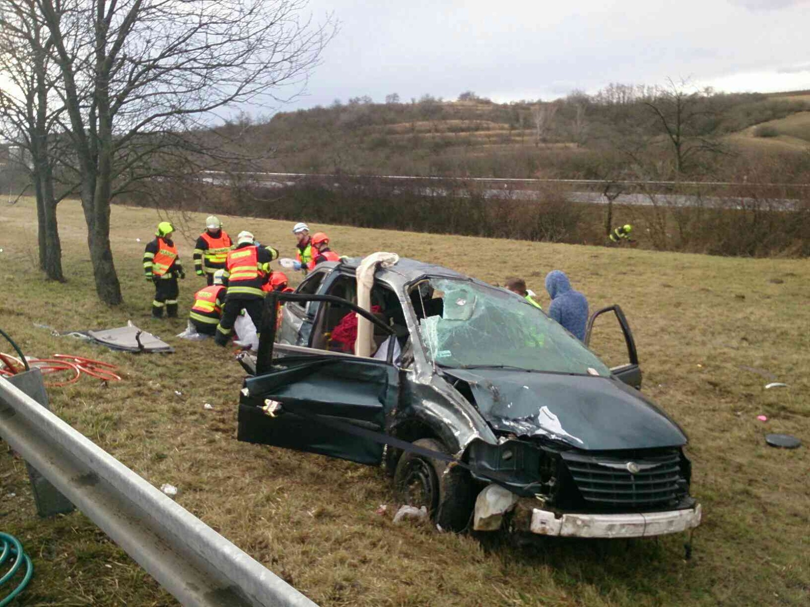 Pátek, 21. února 2020 - Dnes dopoledne jsme vyslali tři hasičské jednotky k dopravní nehodě na 29. kilometru dálnice D2 ve směru na Bratislavu. Jedno vozidlo zahraniční registrační značky skončilo mimo dálnici. Hasiči z něj vyprostili tři osoby. Celkem se při nehodě zranilo pět lidí. Do příjezdu posádek záchranné služby poskytli hasiči zraněným první pomoc a tepelný komfort. Dálnice zůstala během zásahu průjezdná. Jednotky na místě zasahovaly od 9.07 do 10.23 hodin.