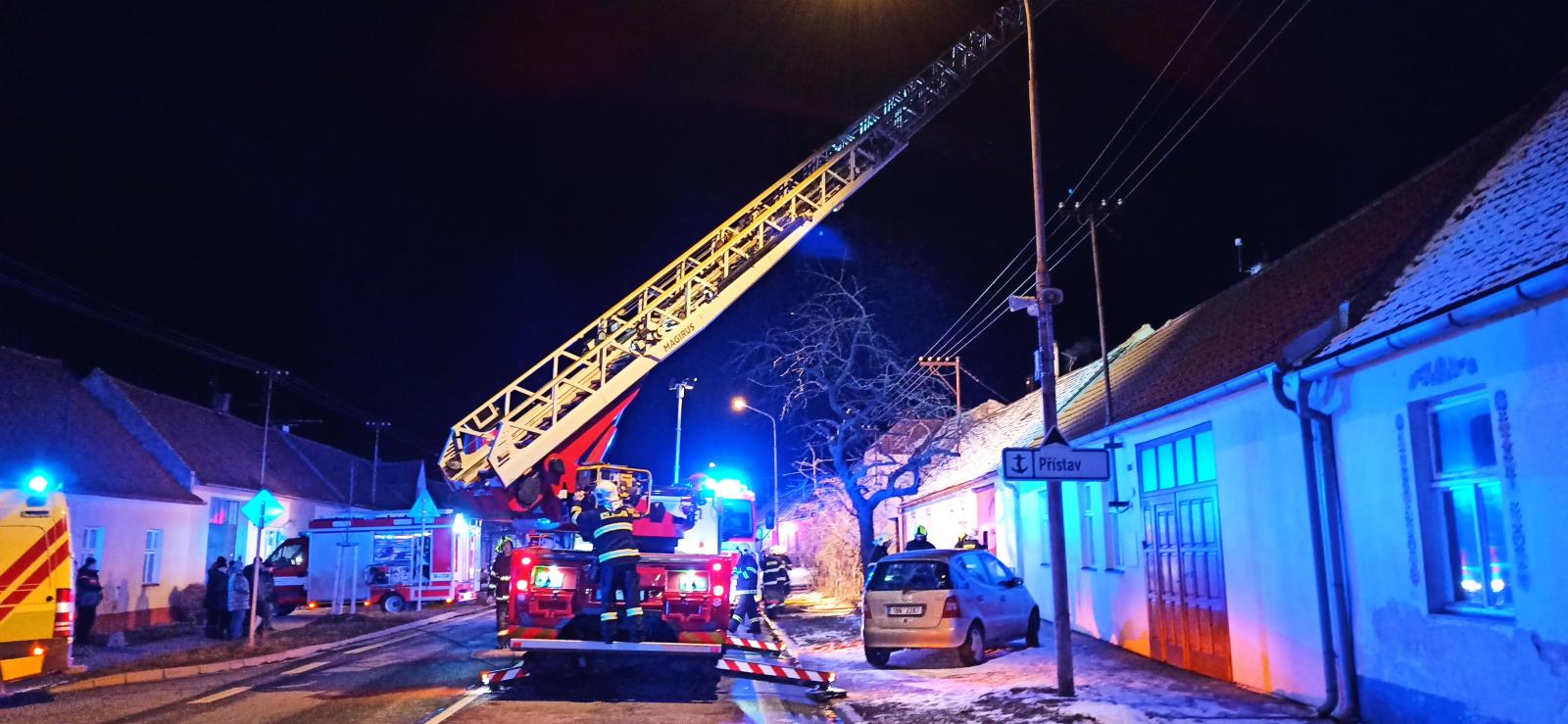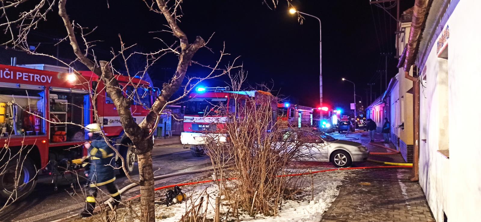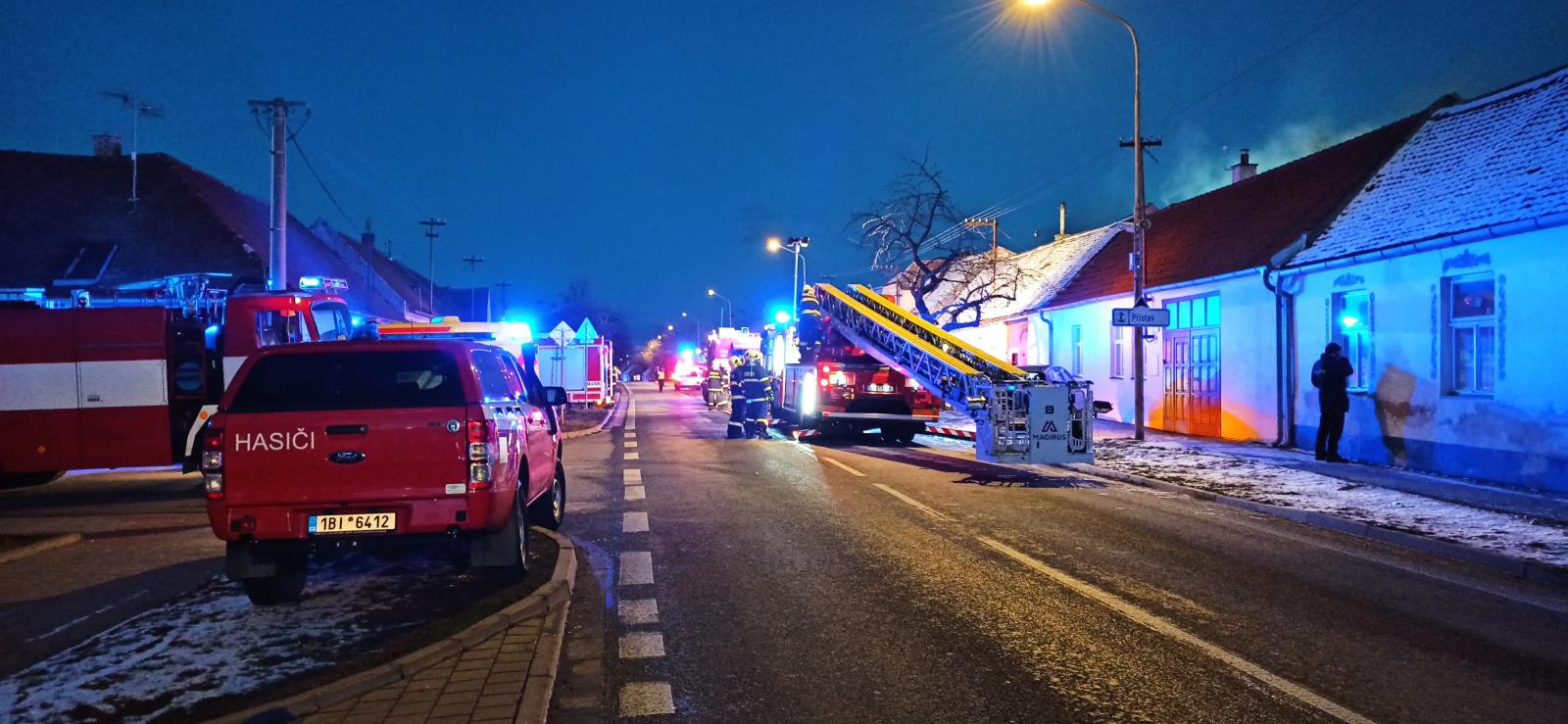 Neděle 23. ledna 2022 - Sedm jednotek včera krátce po 16. hodině zasahovalo u požáru přístavku rodinného domu ve Strážnici na ulici Skalická.