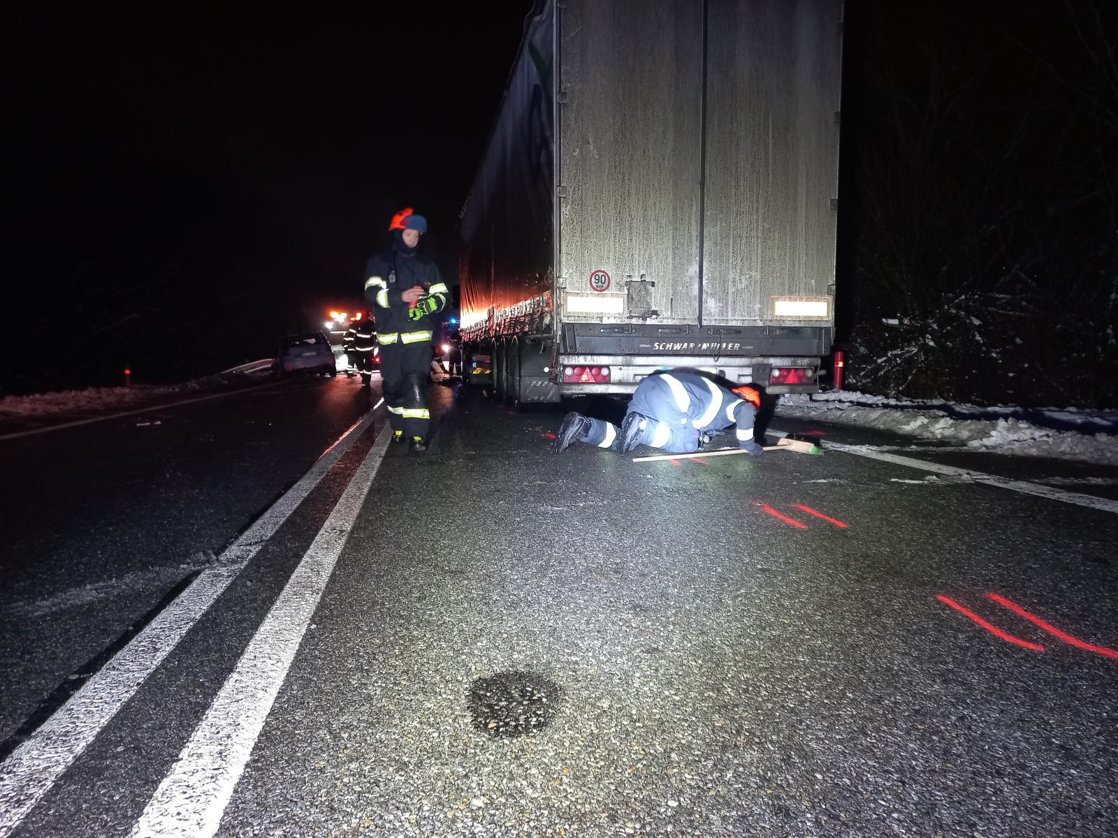 Úterý, 20. prosince 2022 – Dnes odpoledne jsme zasahovali u vážné nehody kamionu a osobního auta na silnici I/43 poblíž Kuřimi.
