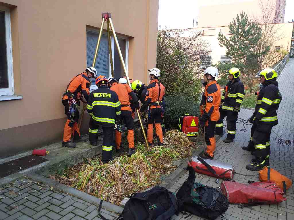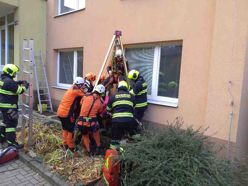 Hasiči zjistili, že paní je při vědomí po pádu do šachty v hloubce asi dvou až tří metrů. Pomocí trojnožky a lanové techniky ženu během přibližně čtvrt hodiny vyprostili a následně předali do péče přivolané posádce ZZS.