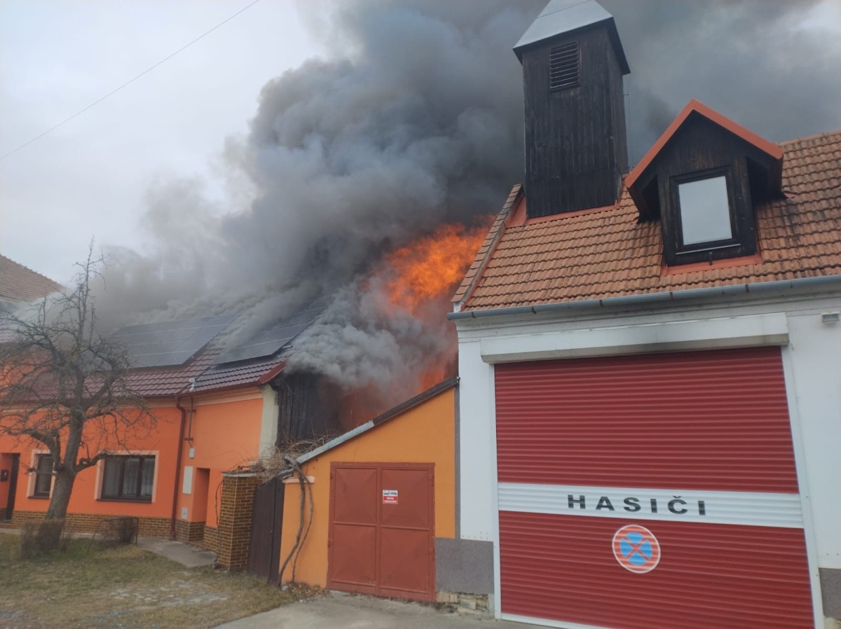 Vzhledem k rychlému šíření ohně byl ve 13:30 vyhlášen druhý stupeň poplachu. Na místo bylo povoláno celkem deset jednotek z Jihomoravského a Zlínského kraje. Hasiči bojovali s ohněm ze všech stran – zevnitř i zvenčí, za pomoci vodních proudů i automobilové plošiny.