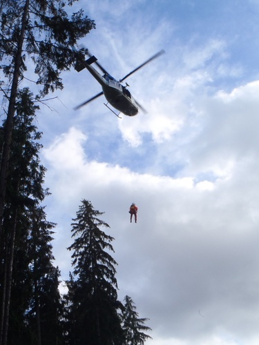 Protože nebyl možný transport do nemocnice vrtulníkem letecké záchranné služby přímo z místa, k události vyrazil druhý vrtulník. Hasiči letečtí záchranáři vyzvedli muže v nosítkách na palubu policejního vrtulníku pomocí jeřábu. Na palubu rovněž vyzvedli i lékaře.Vrtulník následně pokračoval přímo do nemocnice. Jednalo se tak o nejrychlejší a nejšetřnější transport vzhledem k závažnosti a charakteru poranění.