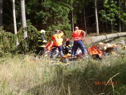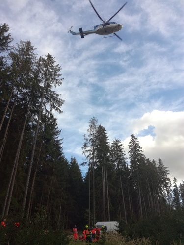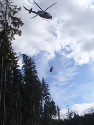 Zraněného dělníka z lesa transportoval vrtulník