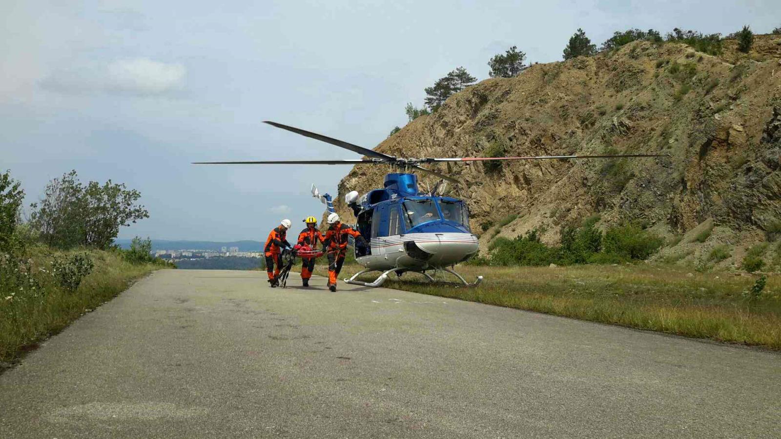 Po příjezdu na místo události provedli hasiči průzkum, kdy zjistili, že terén je skutečně těžko přístupný a pacientku je potřeba co nejšetrněji transportovat ke vzdálenému sanitnímu vozu. Velitel zásahu proto rozhodl o nasazení policejního vrtulníku s hasiči – leteckými záchranáři.