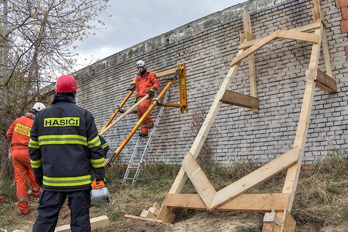 Hasiči procvičovali stabilizaci narušených konstrukcí