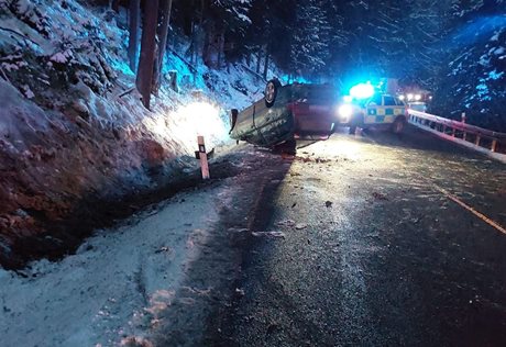 Druhá nehoda se odehrála na silnici mezi obcemi Dolní Nivy a Jindřichovice. Osobní automobil zde skončil převrácený na střeše a zcela zablokoval průjezd. I v tomto případě zasahovali hasiči, zdravotníci a policie. Záchranná služba ošetřila zraněnou osobu a hasiči zajistili místo nehody, provedli protipožární opatření a asistovali při následném odtahu vozidla. Policie se zabývá okolnostmi nehody a zjišťuje její přesnou příčinu.