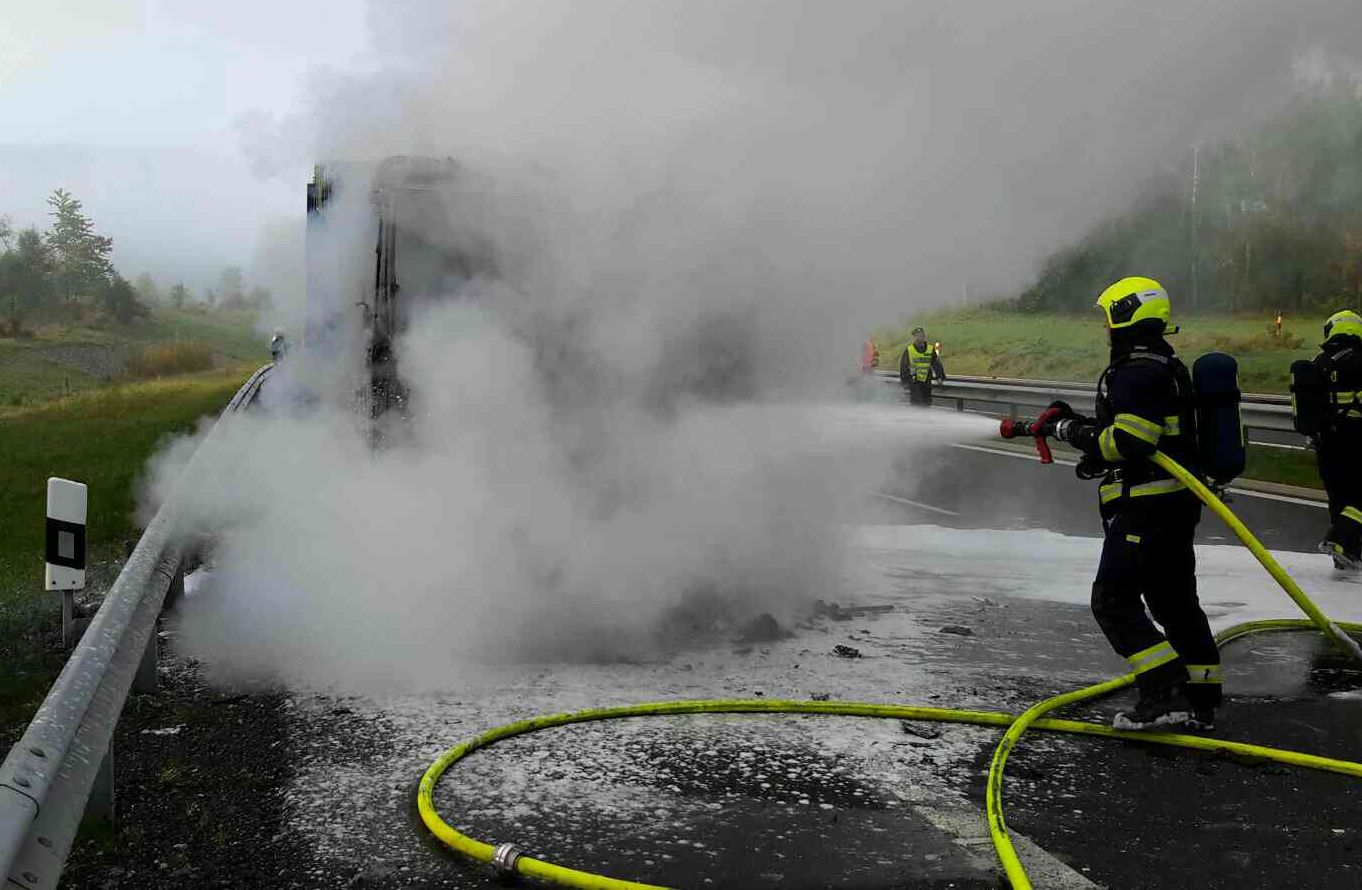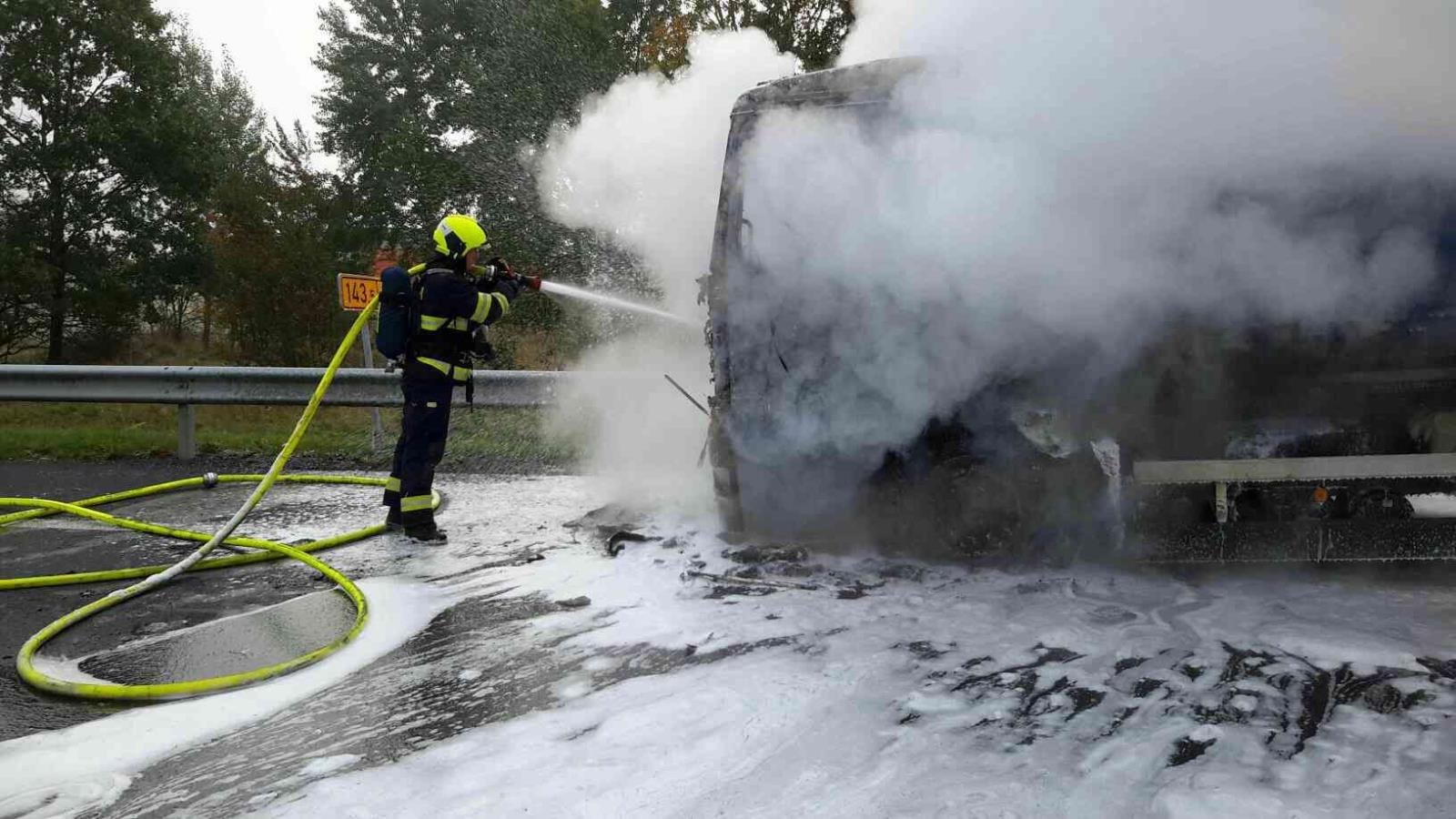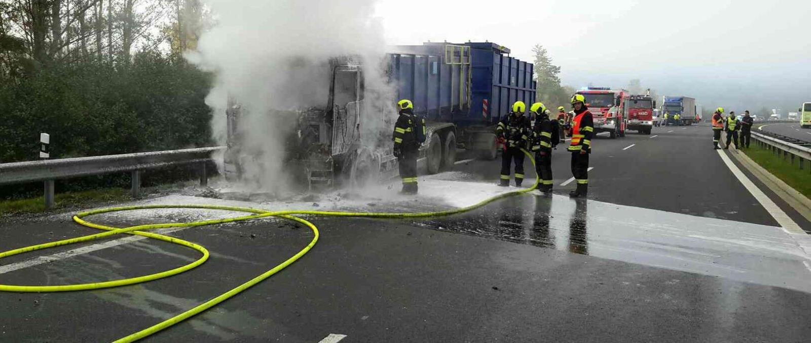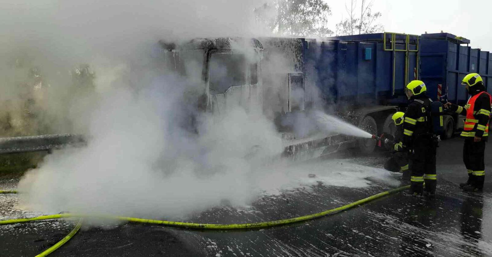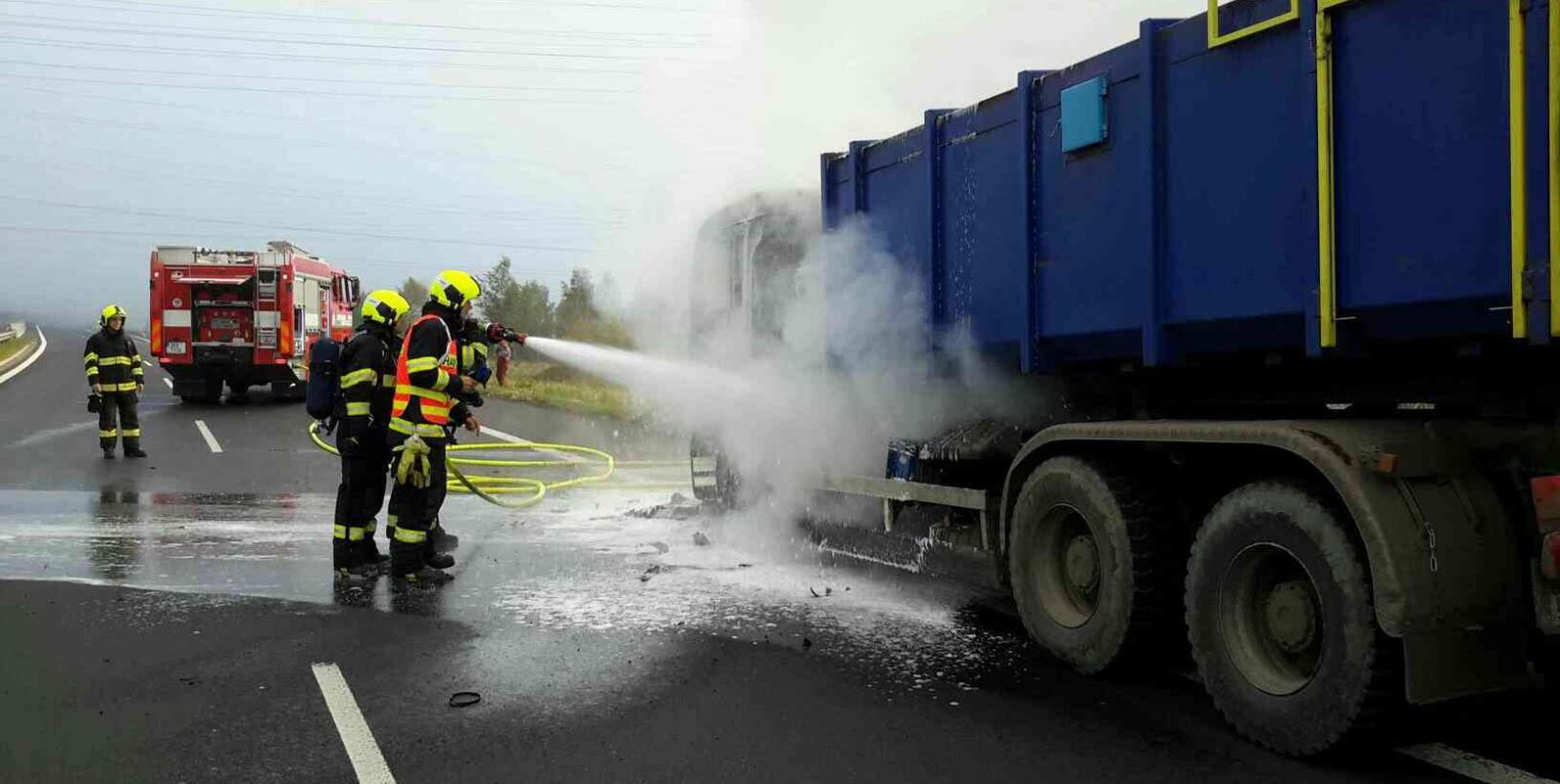 Dvě jednotky hasičů zasahovaly u požáru kabiny kamionu Škoda je odhadnuta na 700 tisíc korun. Provoz na silnici byl více než dvě hodiny omezený.