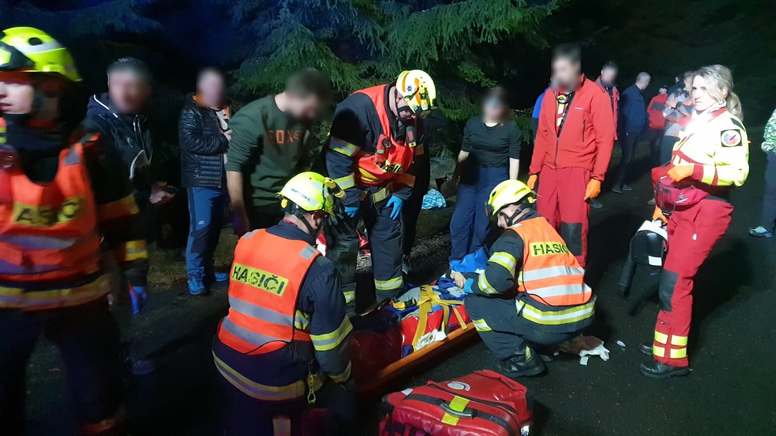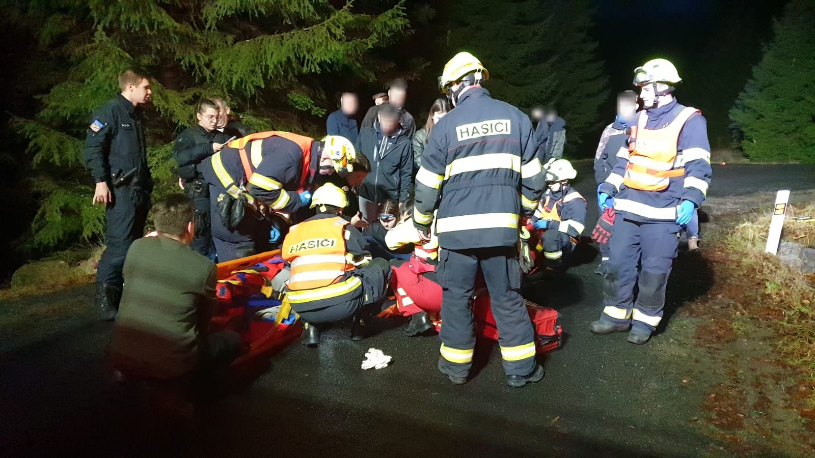 Hasiči jim poskytli první předlékařskou pomoc. S tou jim pomohla skupina kolemjdoucích, profesionální hasič z Libereckého kraje spolu s členkou dobrovolné jednotky hasičů a také s nimi byla i zdravotní sestra. Společně se postarali o zraněné až do okamžiku, kdy se na místo dostavil lékař z letecké záchranné služby. Z místa nehody bylo nutné zraněné osoby převést k místu přistání vrtulníku v kabině hasičského vozidla. Hasiči se následně postarali o únik provozních kapalin ze čtyřkolky a asistovali u vyproštění stroje. Stejně tak pomáhali s likvidačními pracemi u nehody na silnici I/13, kde byl kvůli nehodě zastavený provoz na více než dvě hodiny.