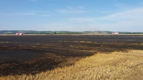 V odpoledních hodinách pak hasiči vyjížděli k dalšímu požáru pole, tentokrát u Milhostova. Na místě zasahovaly čtyři jednotky hasičů, oheň zasáhl strniště na rozloze zhruba 300x400 metrů. Likvidace trvala hodinu a v tomto případě je požár bez škody.